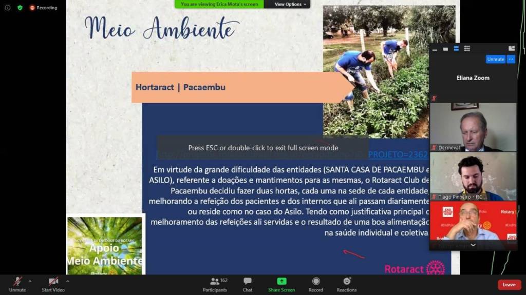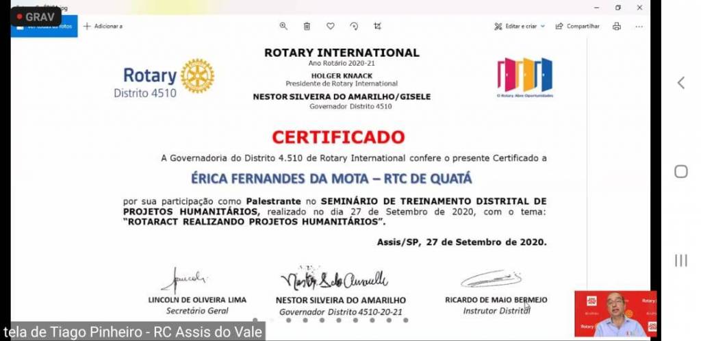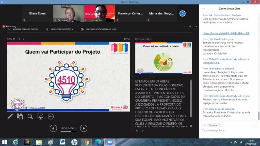 RCPP Rosa dos Ventos participou do Seminário Distrital de Projetos Humanitários on line do Distrito 4510 dia 27-09-2020.
