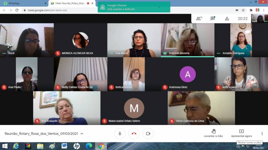 18 Reunião do dia 09-03-21 tivemos palestra com a psicóloga Ana Maria Gomes dos Santos falando sobre as mulheres e tivemos as visitas de: Gov. 2014/15 Vilcio Caetano de Lima, Presidente Interact pp Leste Andressa Felisberto Ferreira Diniz, Comp. do RC P rimavera, Nelly Caldas, nossa convidada Mônica Alencar, ex comp. Maria Isabel Orlato Selem.
