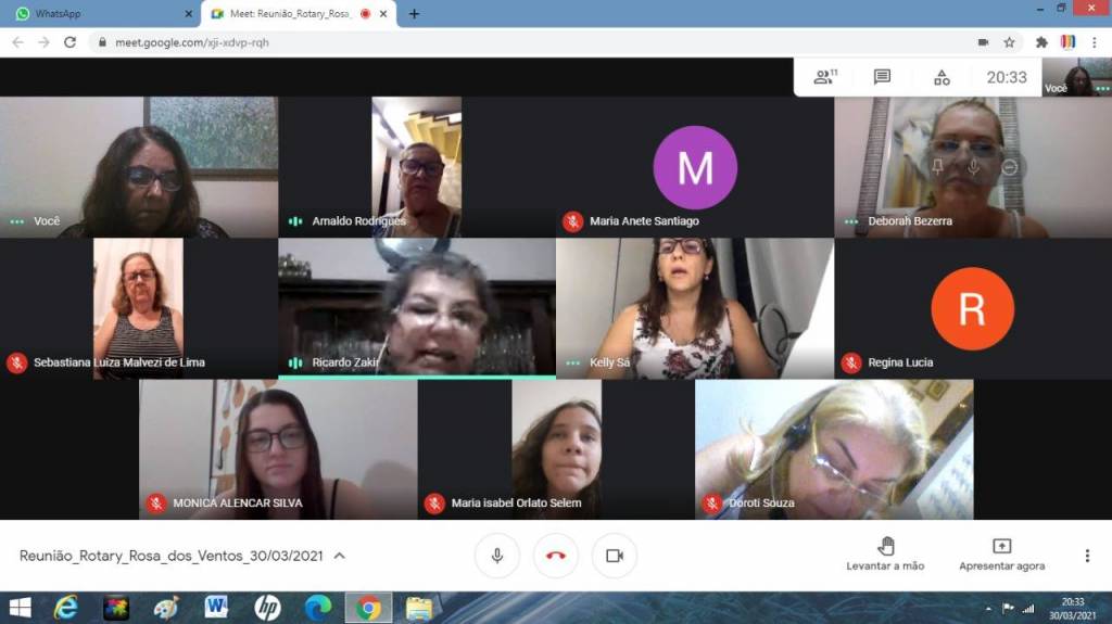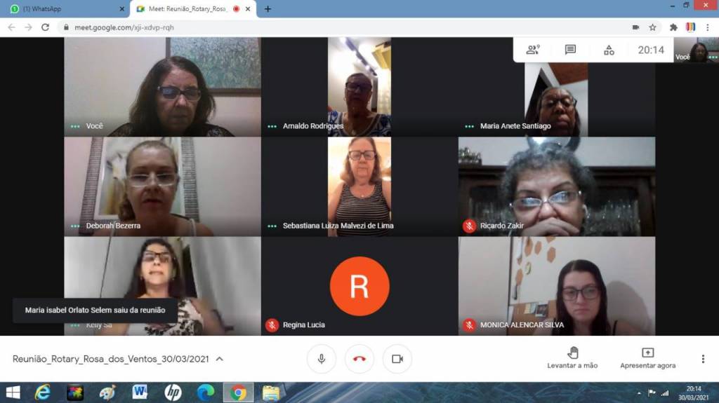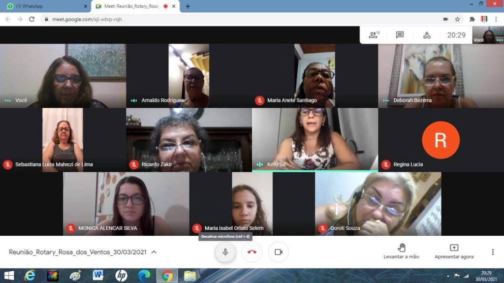 Dia 30-03-21 reunião on line , tivemos as visitas: ex comp. Maria Isabel Orlato Selem, Regina Lucia Bertani convidada da comp. da Sumaia, Monica Alencar Silva, Maria Nete Santiago do NRDC Santa Rita de Cássia.