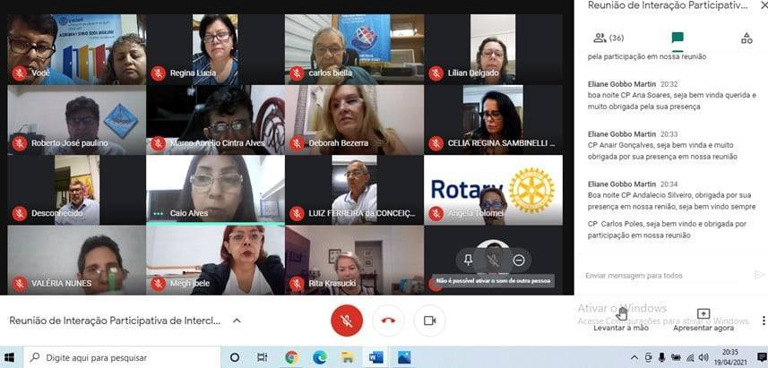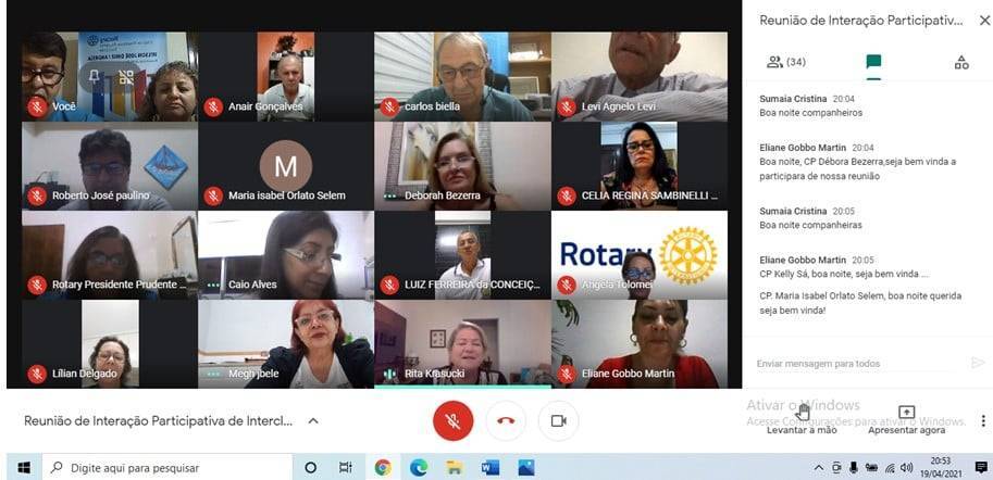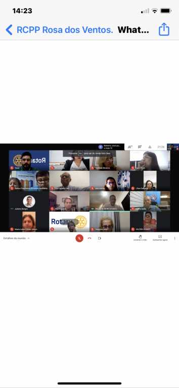 Reunião conjunta dia 19-04-21 dos RCPP Rosa dos Ventos, RCPP Nascente, RC de Sorocaba- Art Nossa Inovação , distrito 4621, RCPP Leste e RC Patos de Minas Guaratinga e Club Satélite do Distrito 4710. Tivemos também a presença do Governador Eleito 2021/22 Carlos Adão Biella do RC Bauru Parque da Nações. Foi uma reunião onde falamos sobre NRDC e trocamos experiências.