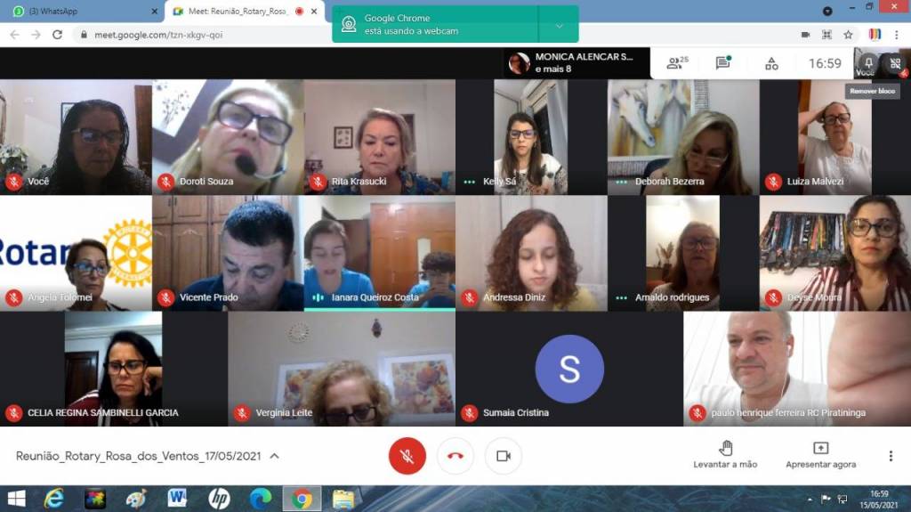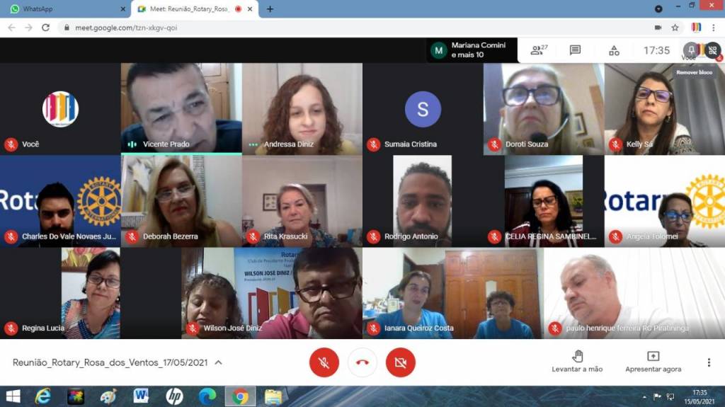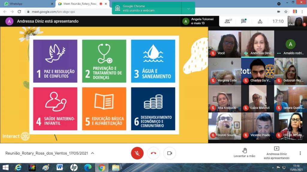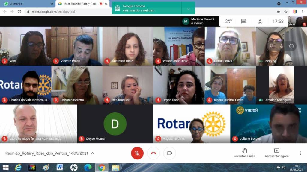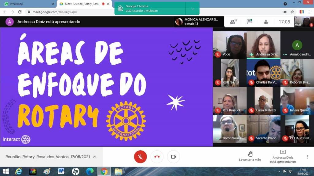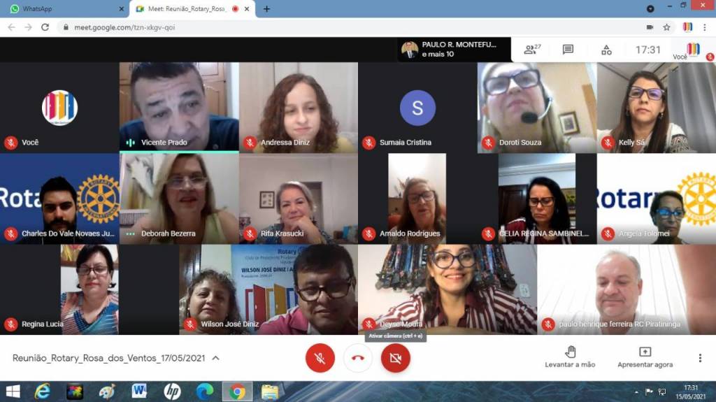 Dia 17-05-21 tivemos reunião Interclubs com RCPP Rosa dos Ventos, RCPP Nascente, RC de Piratininga, com palestra com o tema Áreas de Enfoque do Rotary ministrada pela Presidente do Interact PP Leste coo patrocinado pelo RCPP Rosa dos Ventos, Diretora Distrital da The Rotary Foundation, Vice- RDI, Vice RDL e Diretora do Concurso Distrital de Projetos Andressa Felisberto Ferreira Diniz.Tivemos as visitas: