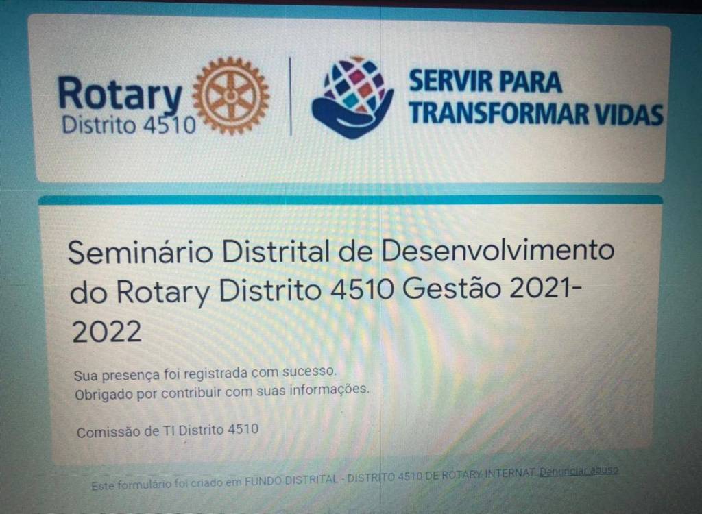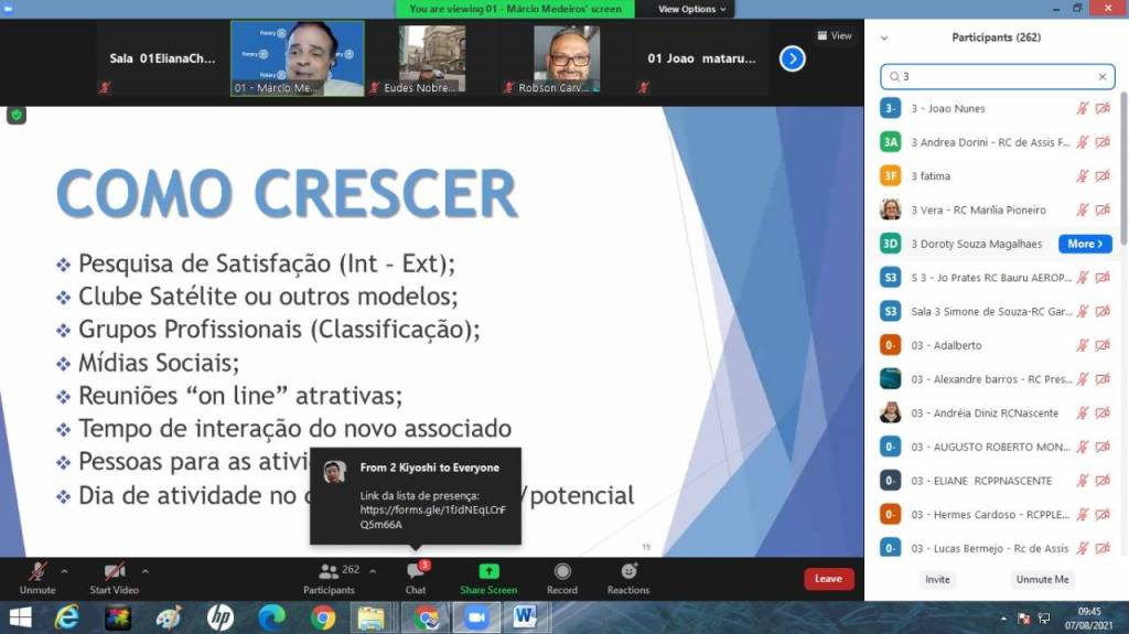 Rotary Club de Presidente Prudente Rosa dos Ventos presente no Seminário do Distrito 4510 de Desenvolvimento em Rotary dia 07/08/21.