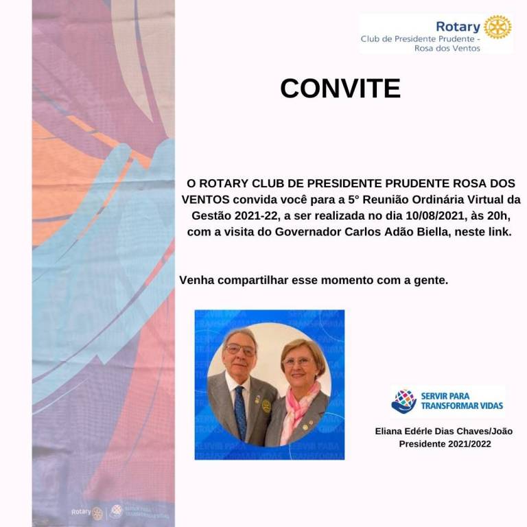 Postado em: 11 de Agosto de 2021 por Rotary Club de Presidente Prudente-Rosa dos Ventos