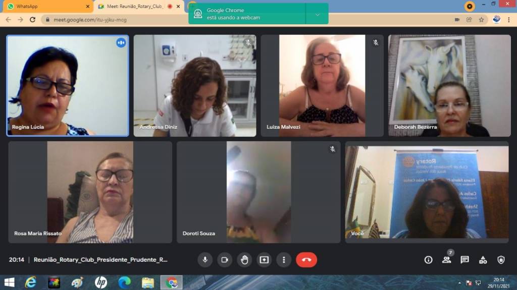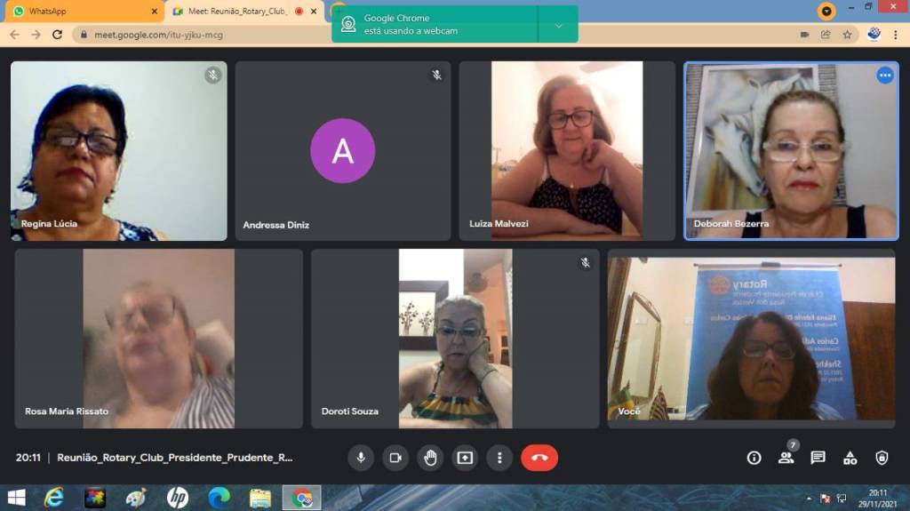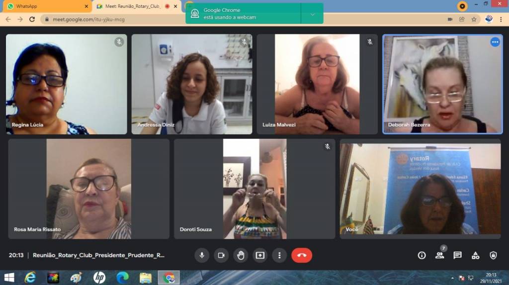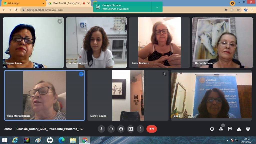 Reunião dia 30-11-21, com a presença da presidente do Interact Club de Presidente Prudente Leste, Andressa Felisberto Ferreira Diniz.