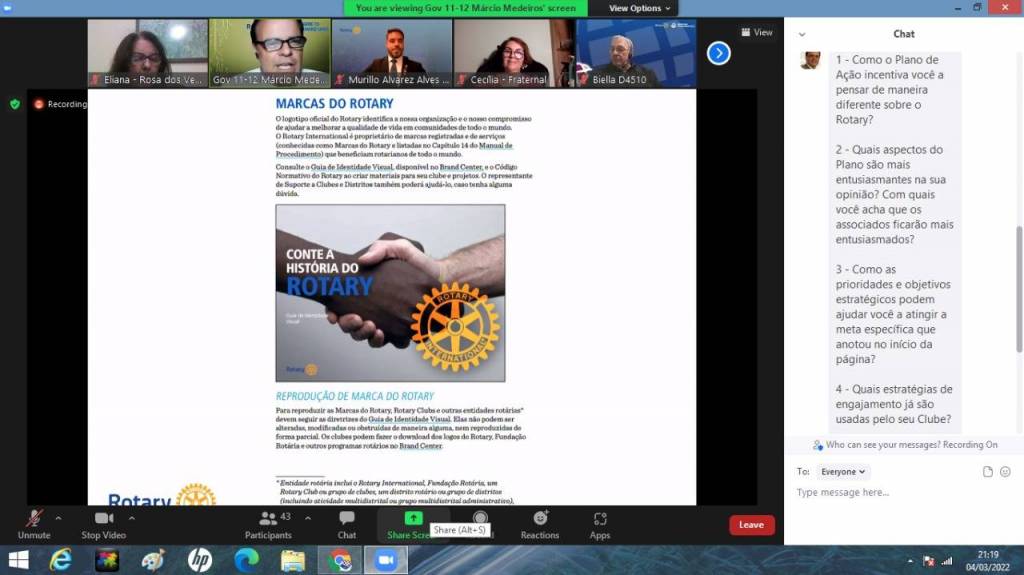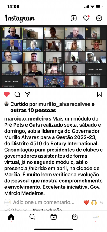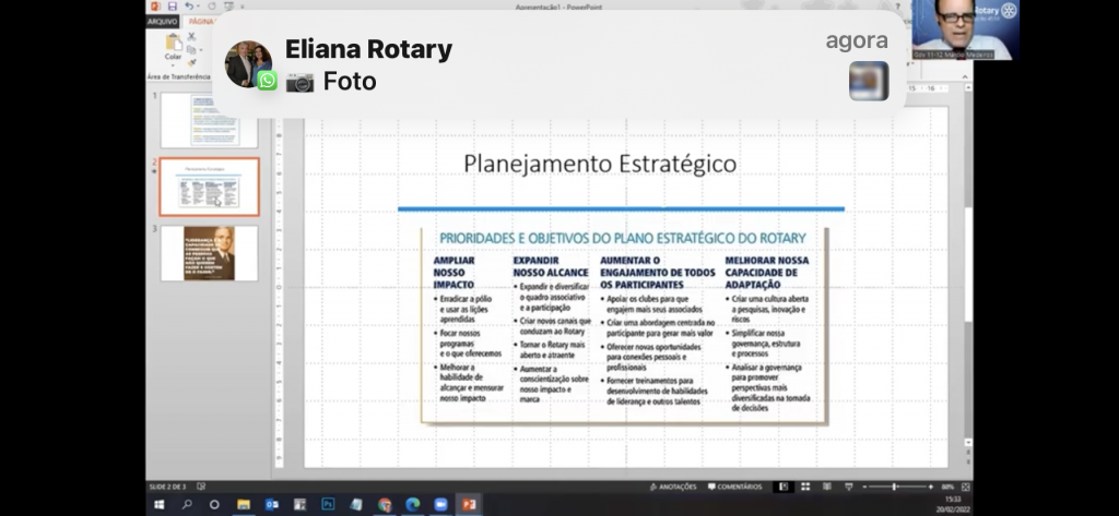 Dia 05-03-22 a Presidente eleita Eliana Erdele dias Chaves participou do Pré- Pets para a gestão 2022/23.