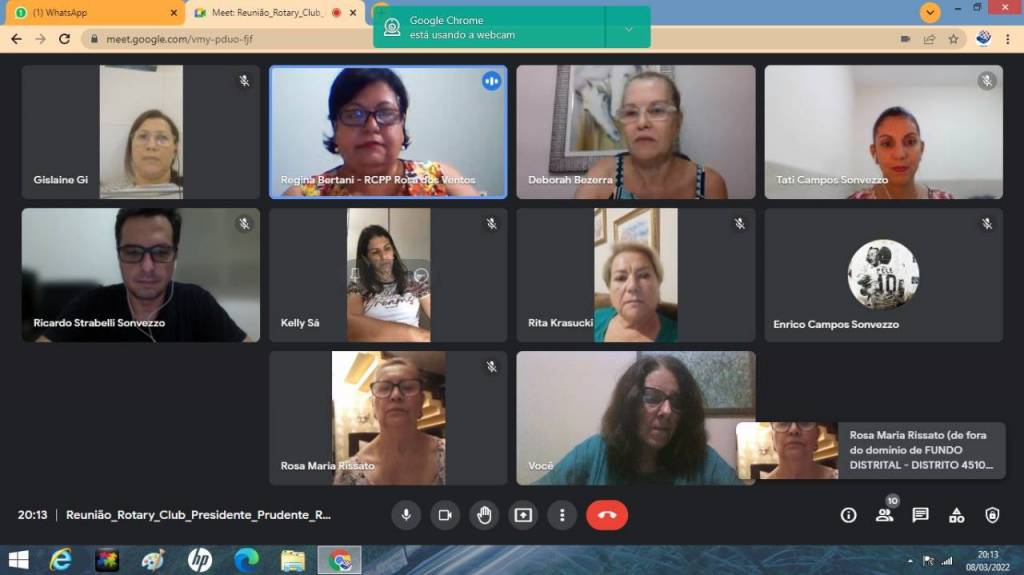 Dia 09-03-22 reunião ordinária com a presença do nosso intercambiário Enrico Campos Sonvezzo, sua mãe Tati Campos Sonvezzo, seu pai Ricardo Strabelli Sonvezzo e Gislaine Giroto convidada da comp. Regina.