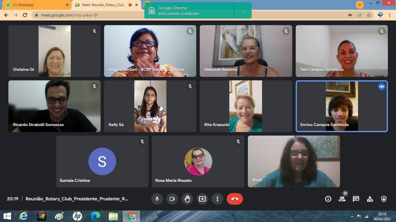 Dia 09-03-22 reunião ordinária com a presença do nosso intercambiário Enrico Campos Sonvezzo.