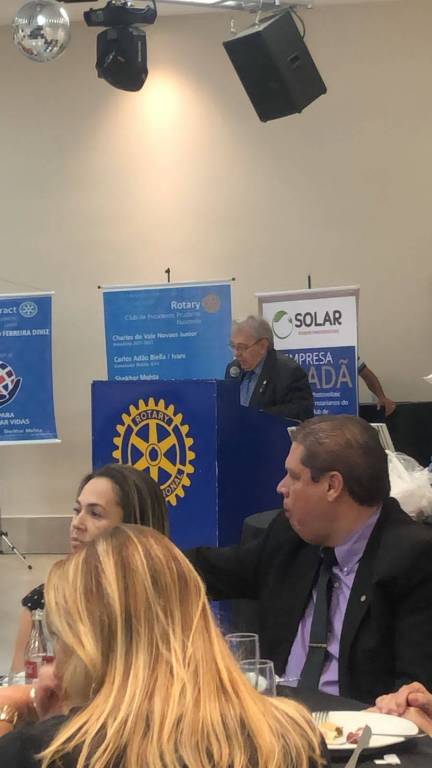 Dia 25-03-22 no restaurante Guaíba a Câmara Municipal de Presidente Prudente, em sessão solene em comemoração do dia do rotariano homenageou os presidentes dos clubes rotários de Presidente Prudente e os lideres rotários , com a presença do Governador do Distrito Carlos Adão Biella e sua esposa Ivani.