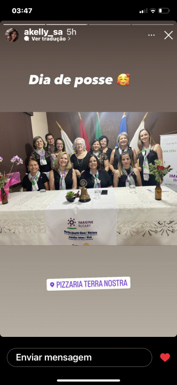 Reunião festiva de posse da companheira Paula Paraiso Orosco Gienel dia 22-03-23. Tivemos as presenças: Gov. 2024/15 Vilcio Caetano de Lima, RCPP Sudoste, Joel Soares, RC de Dracena Imperial Paulo Sergio Teixeira, Presidente InteractCPP Leste, Vallentina Lima Gorgulho, Leticia Tereza Leticia Bertani, filha da comp. Regina Lucia,Ana Sá Soares filha da comp. Kelly Sá,Família da comp. Paula Pedro Henrique Orosco Ginel. Fabio de Silva Ginel, Luiz Paulo Orosco Gienel e Hermes Cardoso.
