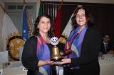 Presidente 2022/23 Eliana Ederle Dias Chaves passando o sino e o martelo para presidente 2023/24 Kelly Regina Sá Soares para dar o primeiro toque no sino de sua gestão, dia 27-6-23