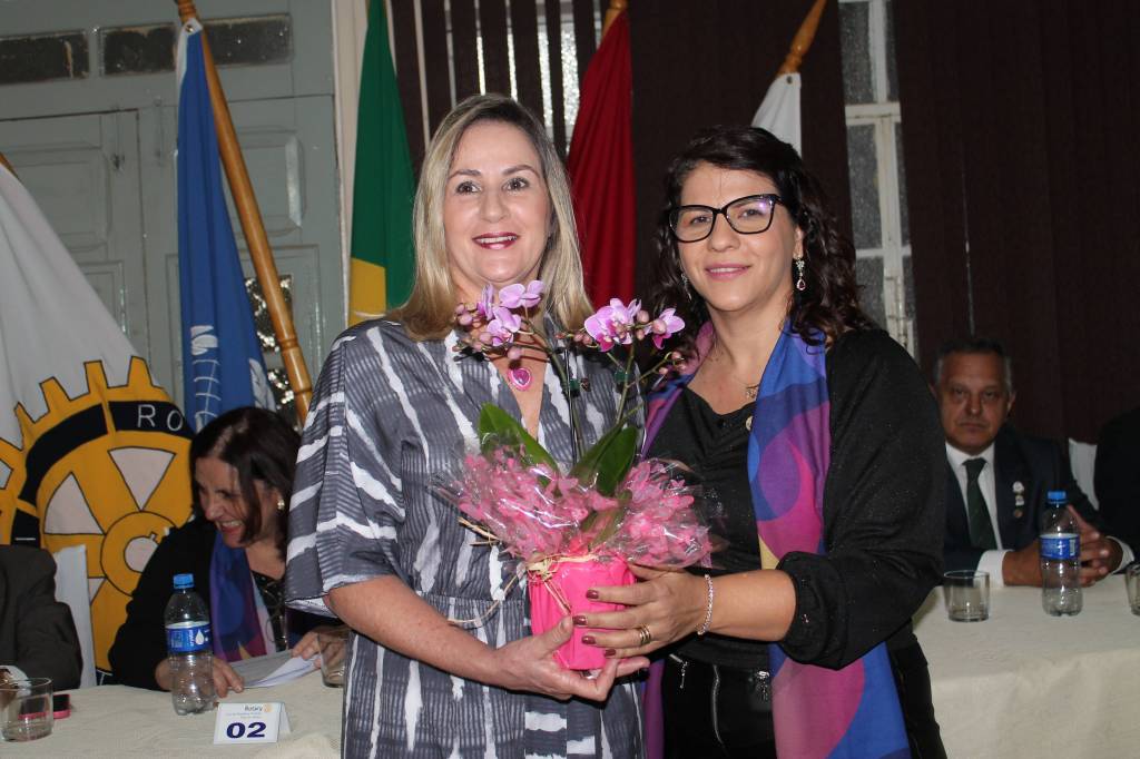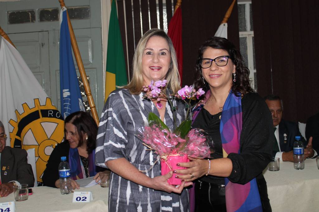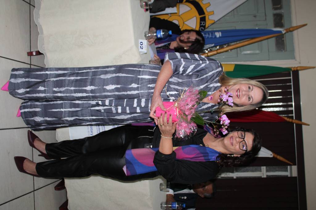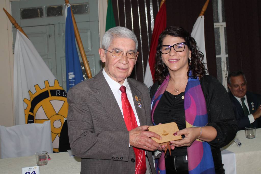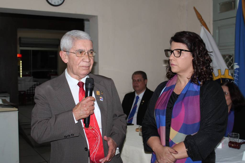 Presidente Kelly Sá da posse para os Associados Honorários na festiva de encerramento dos trabalhos da gestão 2022/23, posse do conselho diretor do RCPP Rosa dos Ventos ao Governador 2015/15 Vilcio Caetano de Lima, e Cassia Sperini no dia 27-06-23.