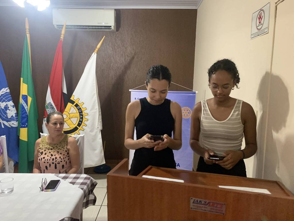 Reunião dia 26/09/23, tivemos apresentação da intercambiaria alemã, Thaira Sarah Ntschke, da nossa intercambiaria Ana Beatriz Rodrigues, comp. RC de Dracena Imperial Paulo Sergio Teixeira, associada honorária Cassia Sperini, Presidente Interact CPP Leste Andrei Lobo, interactianos, João Gabriel doa Santos e Keslys Sales.