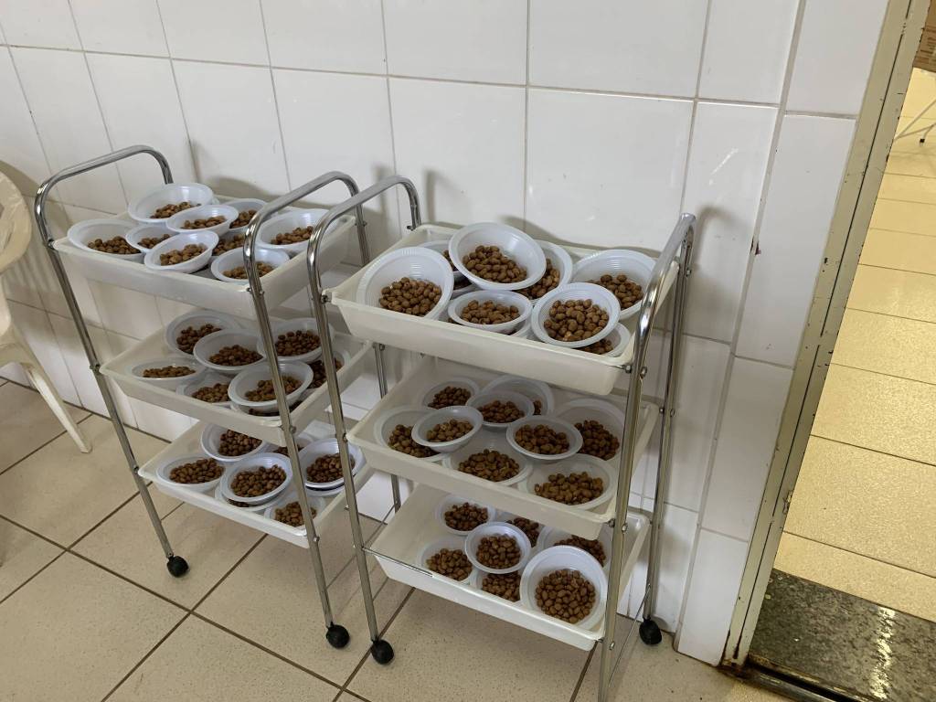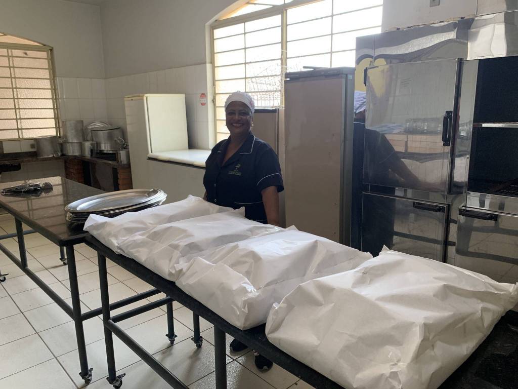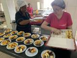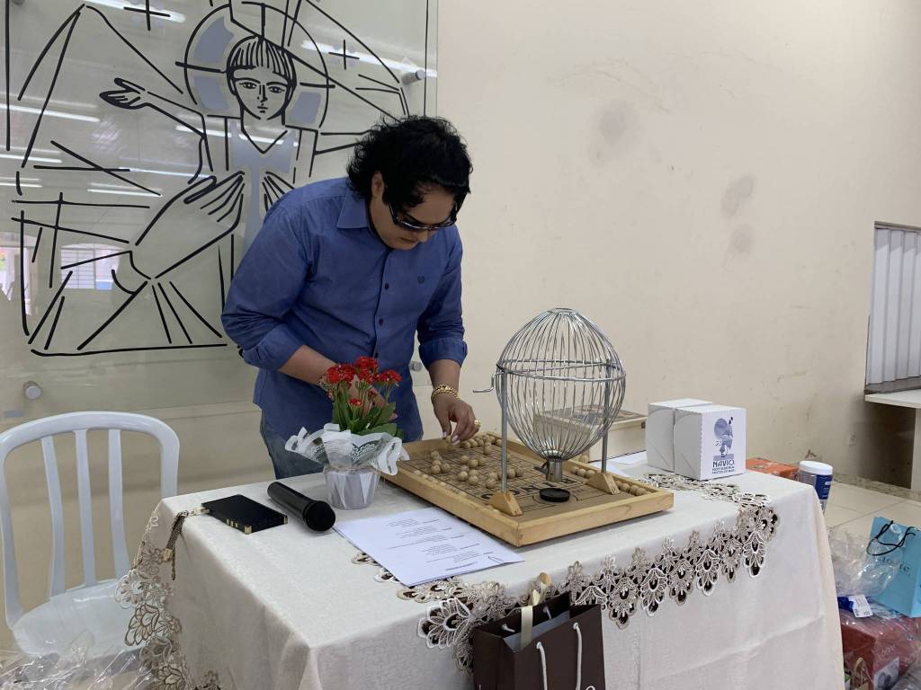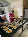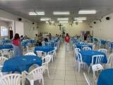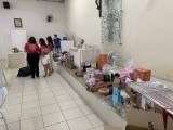 Deixando tudo pronto para o chá beneficente.