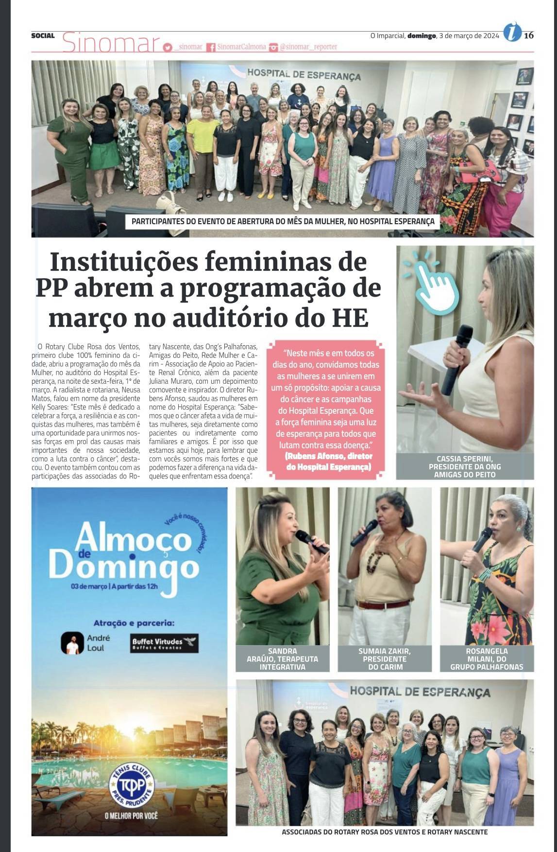 Saímos no jornal O Imparcial dia 03/03/24, sobre abrir a programação de março no Hospital da Esperança.
