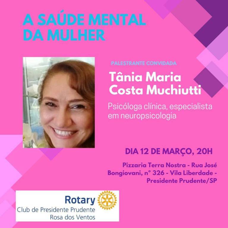 Palestra sobre Saúde Mental da mulher e empoderamento de mulheres feita pela psicóloga Tania Maria Costa Muchiutti dia 12/03/24.