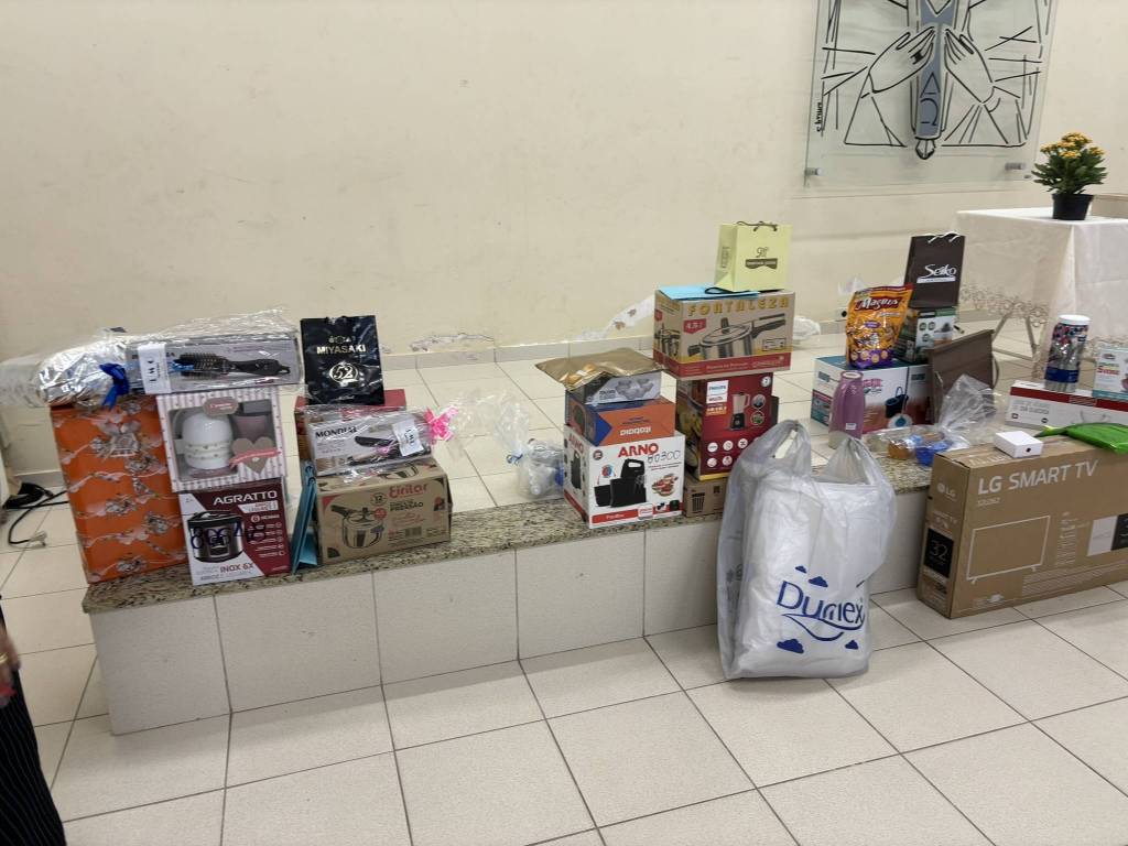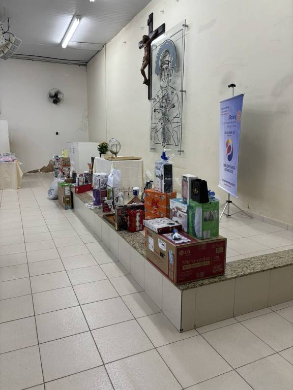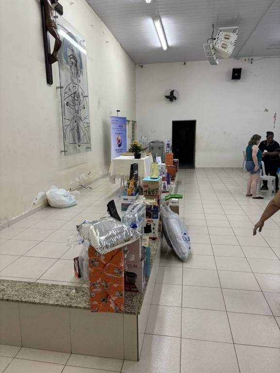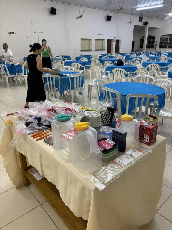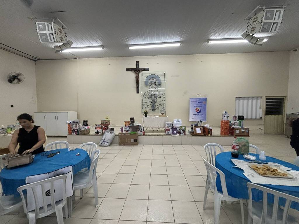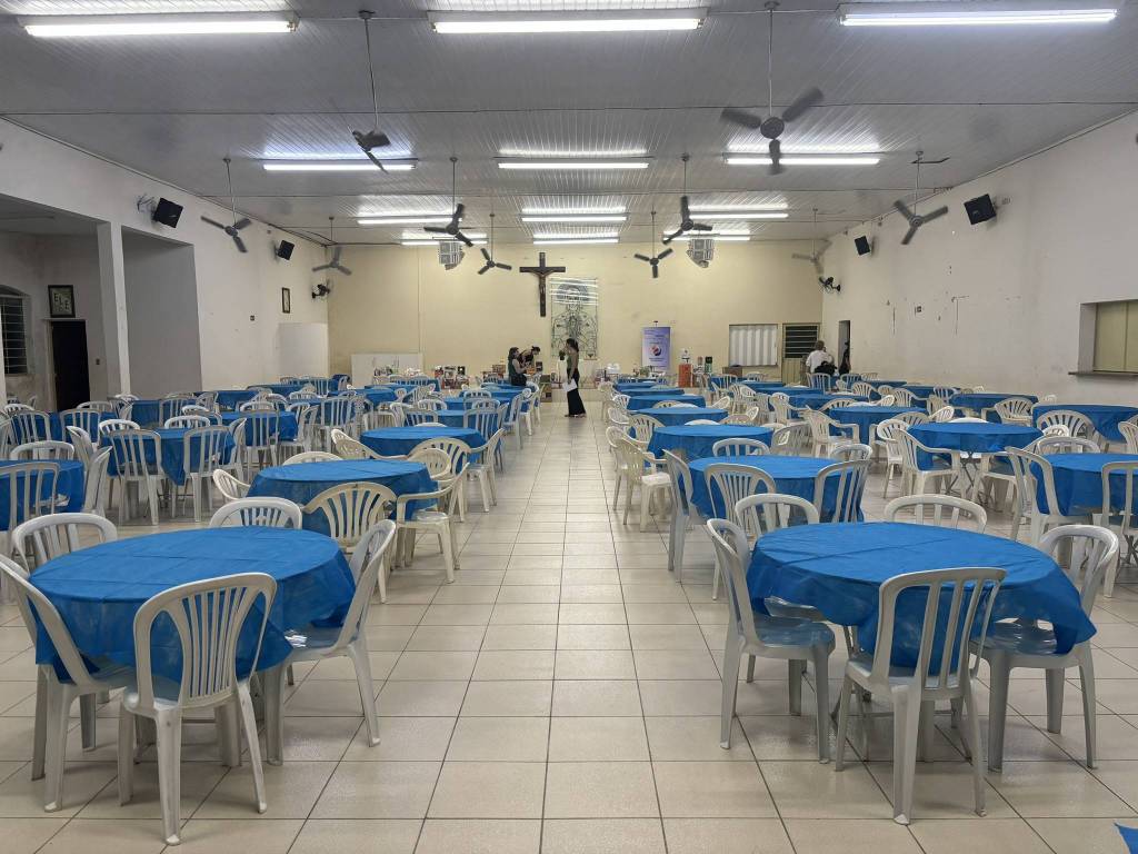 Arrumando o salão do Seminário para o nosso chá beneficente que acontece amanhã 13/04.