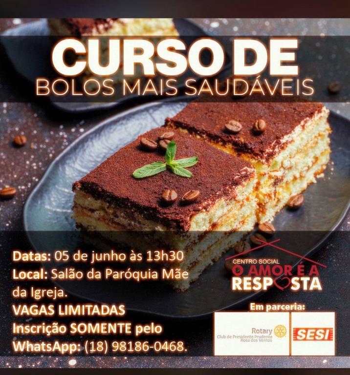 Curso de bolos mais saudáveis NRDC Amor é a Resposta dia 05/06/24 em parceria com o SESI.