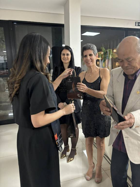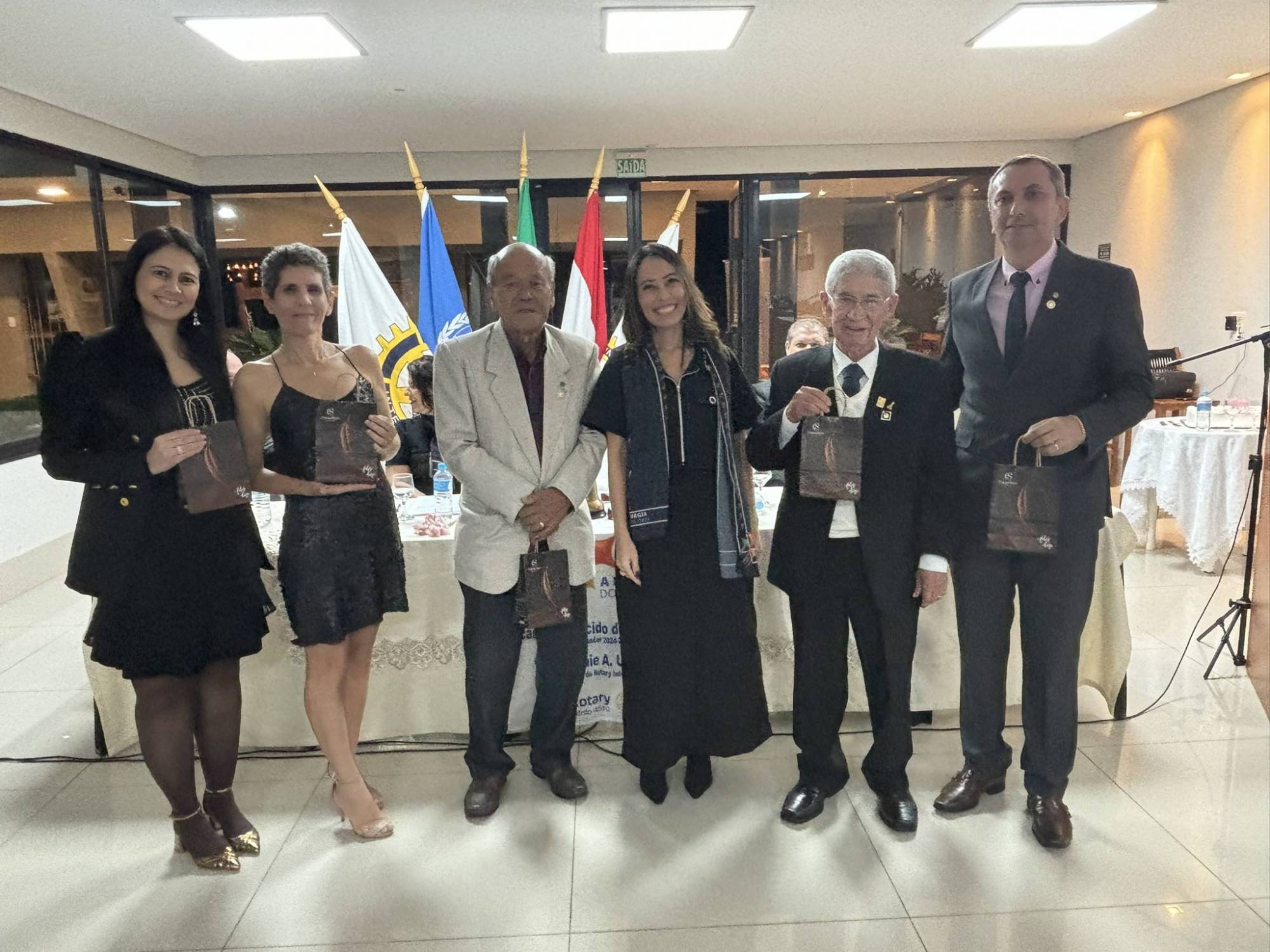 Presidente 2024/25 Vanessa deu posse aos associados honorários, Gov. 2014/25 Vilcio Caetano de Lima, Joel Viscaino Soares, comp. RCPP Sudoeste, Iusufumi Sunaga , comp. RCPP, Valeria Bento e Joice
