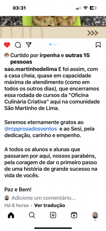 Curso de pães nutritivos no NRDC São Martinho de Lima em parceria com o SESI.