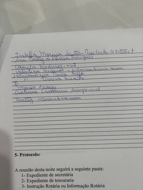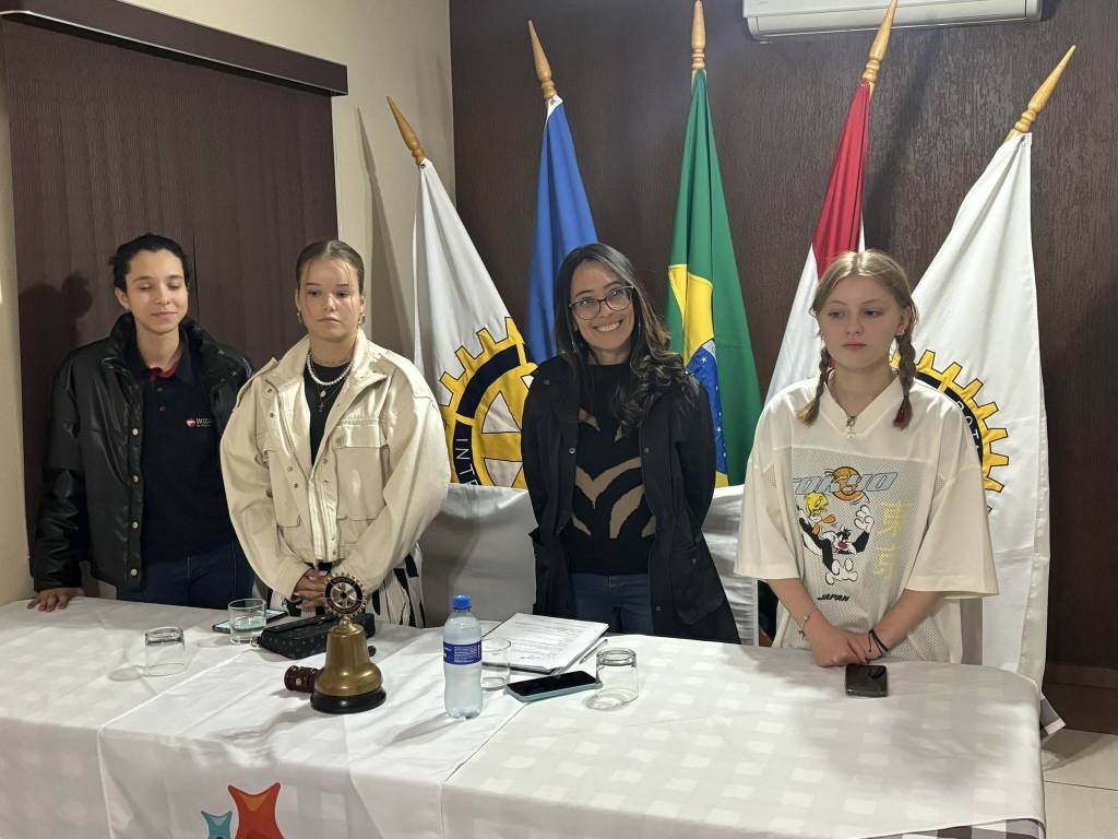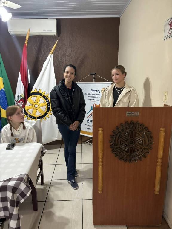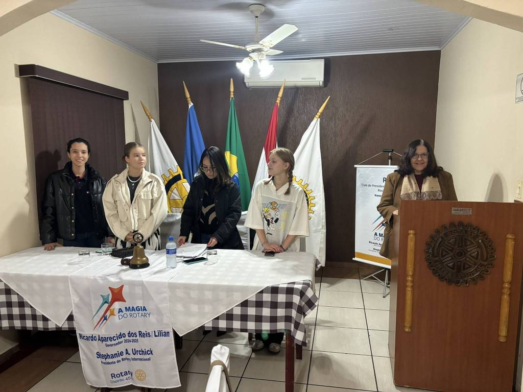 Reunião dia 13/08/24 , tivemos as presenças das intercambiarias da Alemanha, Paula Feige e Theresa Munchi, nossas intercambistas, Valentina Medeiros e sua mãe Camila Medeiros, Beatriz Araujo seus pais, Cristiane Camarini Araujo e Marcos Araujo.Também tivemos as presenças da Isabella Moreira Santos , Presidente do Interact PP Leste e Ana Beatriz de Oliveira Rodrigues do Interact e nesta noite nossa tradutora.