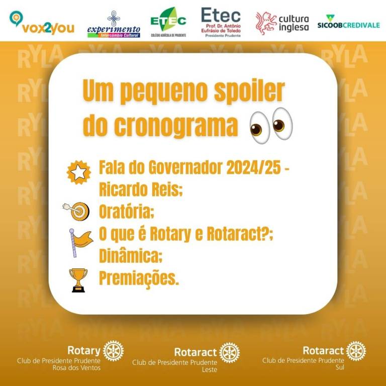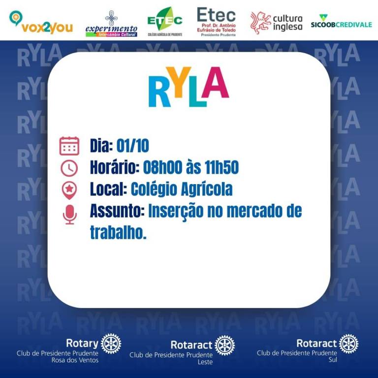Ryla Rotary Club de Presidente Prudente Rosa dos Ventos realizado dia 01/10/24 no Colégio Agrícola, foi um sucesso, tivemos a visita do Governador Do Distrito 4510 Ricardo Aparecido dos Reis.