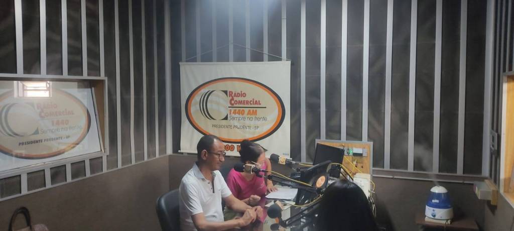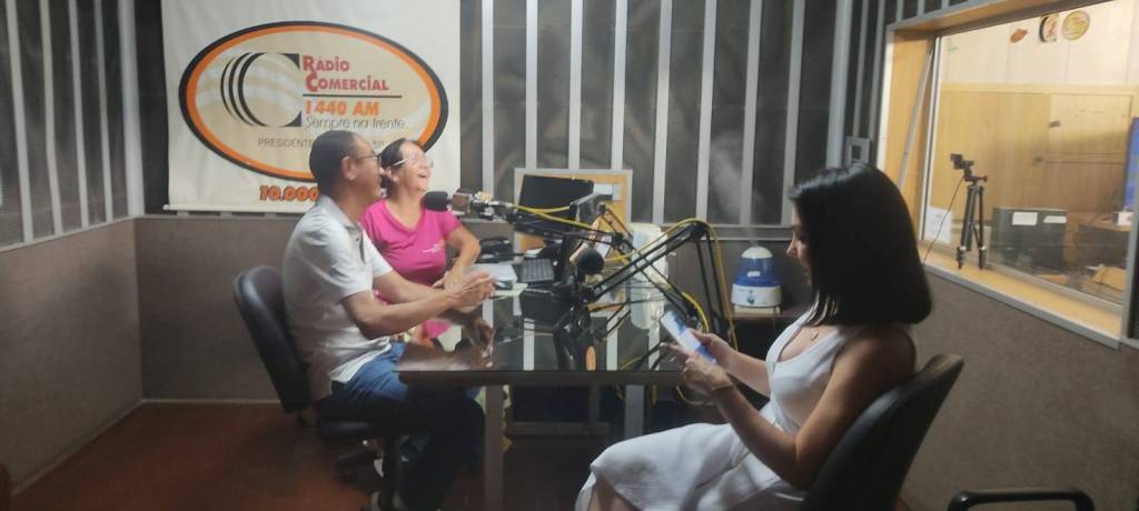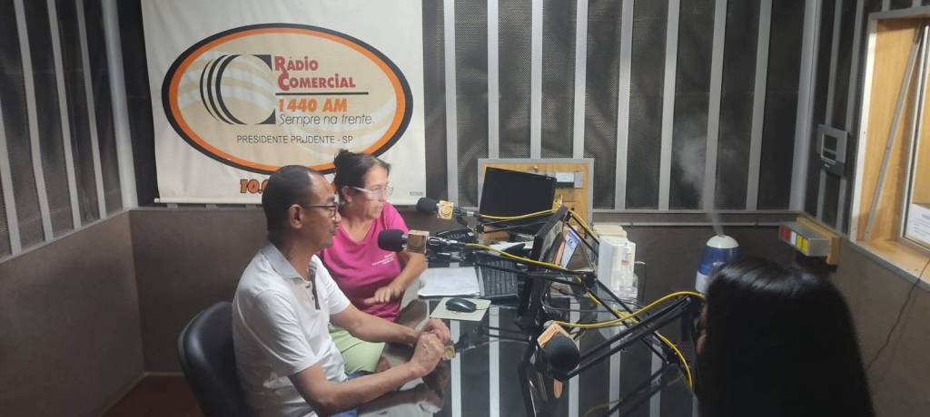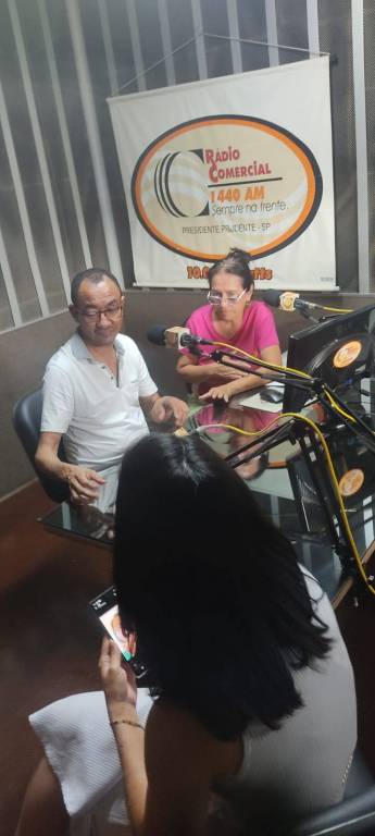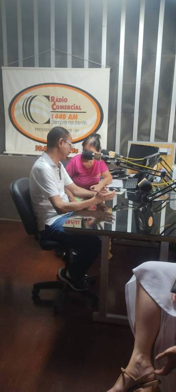 Governador do Distrito 4510 Ricardo Reis dando entrevista na Radio Comercial de Presidente Prudente para nossa comp. Neusa Matos na tarde do dia 01/10/24.