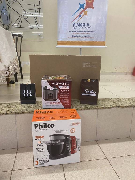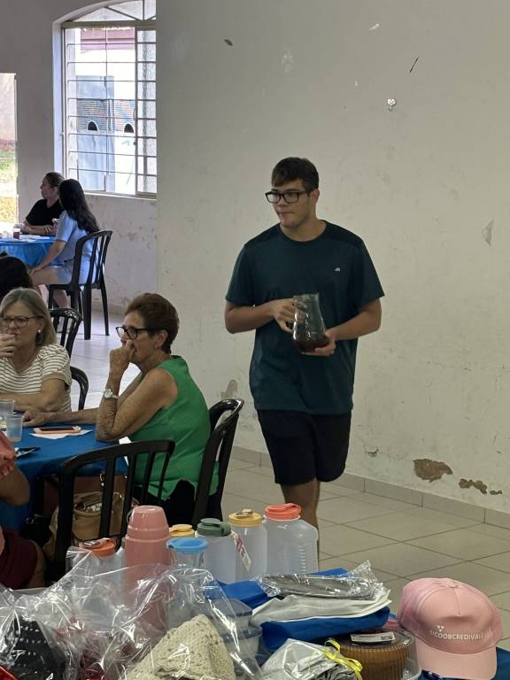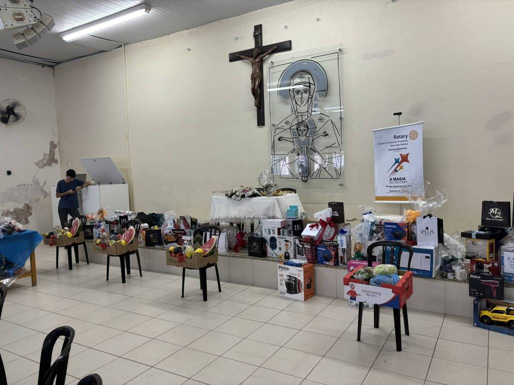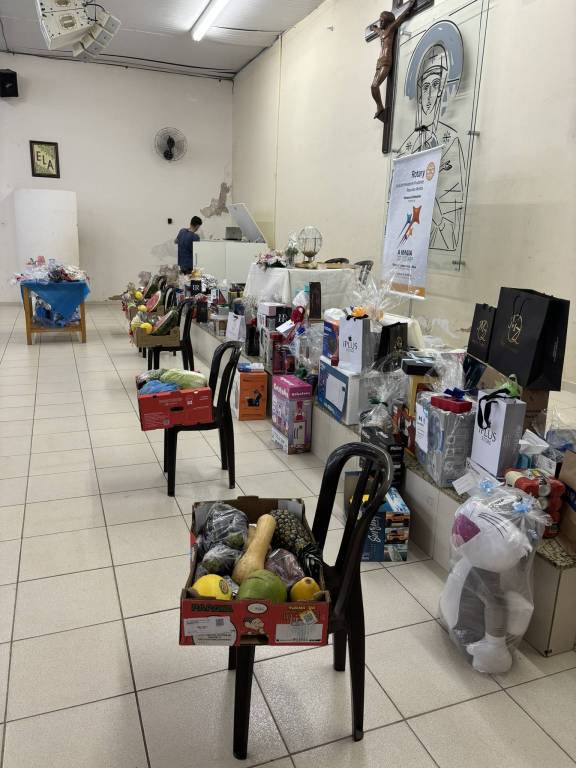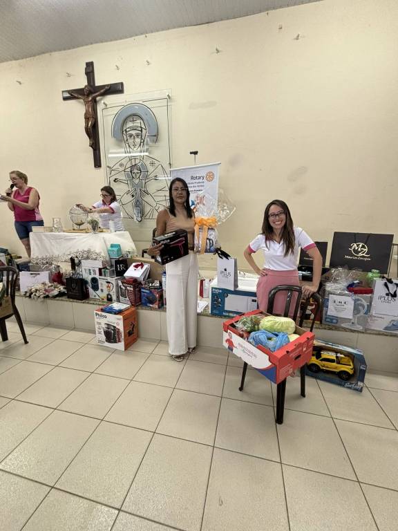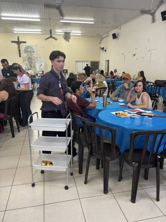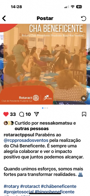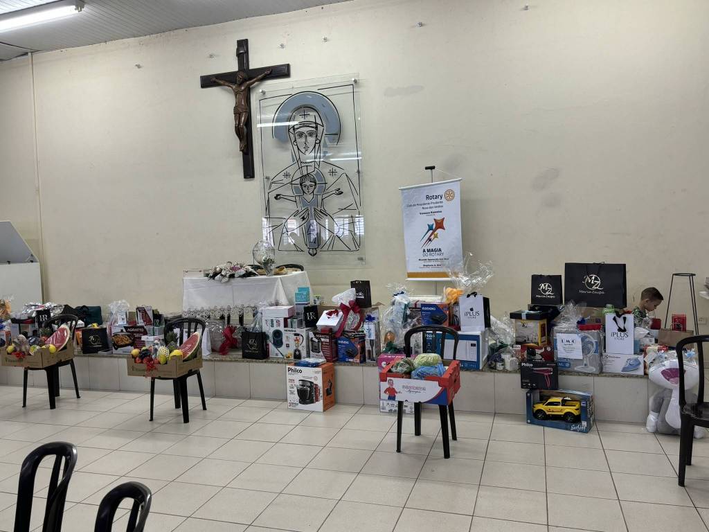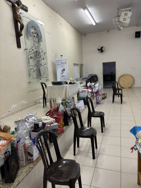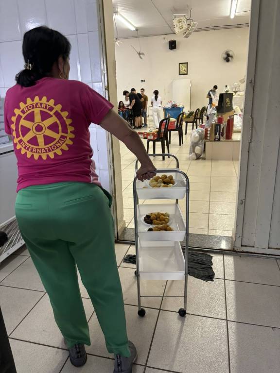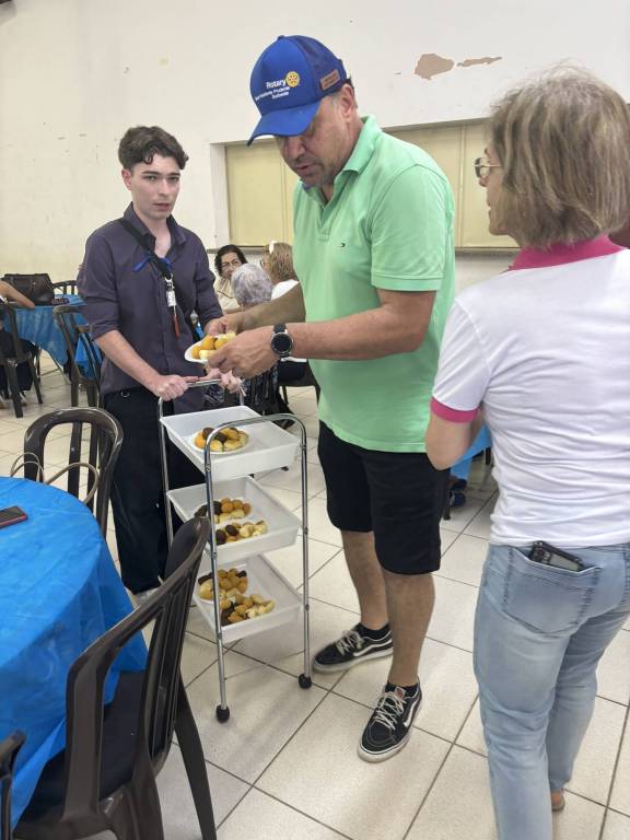 Chá Beneficente realizado na tarde do dia 09/11/24 no Seminário foi um sucesso. Nosso muito obrigado ao Rotaract PP Sul , Andrei Lobo, Pedro Gervasoni, associada honorária Zuila Camara. Ajuda de vocês foi imprescindível!Muito obrigado ao companheiro do RCPP Sudoeste , esposo da nossa comp. Fabiane, que foi tesoureiro, porteiro, ajudou a servir, montou mesas , limpou a suqueira, o chão,auxiliou em tudo . Sua ajuda nos engrandece!E não poderia deixar de postar a foto do presidente do RCPP Sudoeste Hulisses que vestiu nossa camiseta! Obrigado a todos nossos patrocionadores e ao publico que comparaeceu ao chá beneficente.