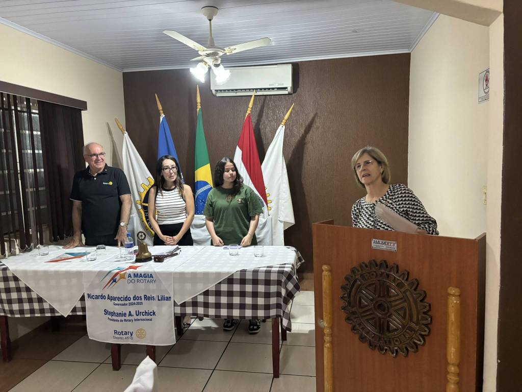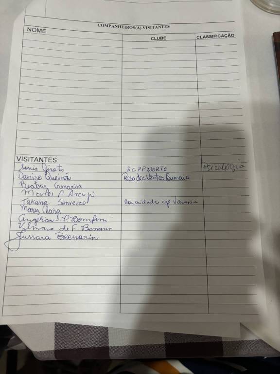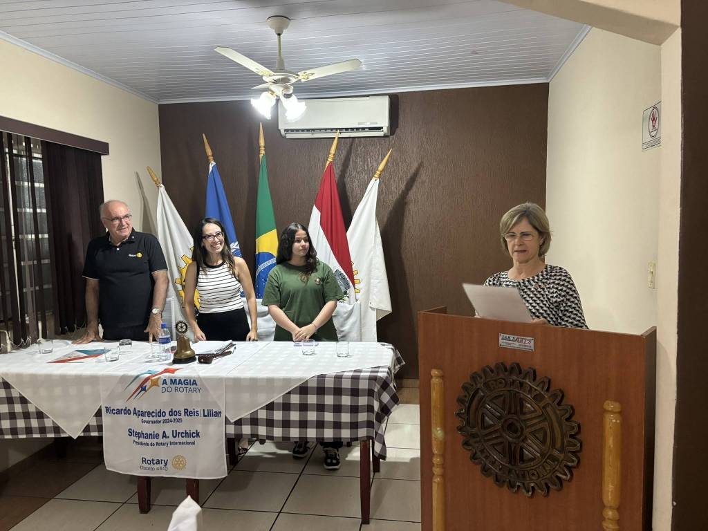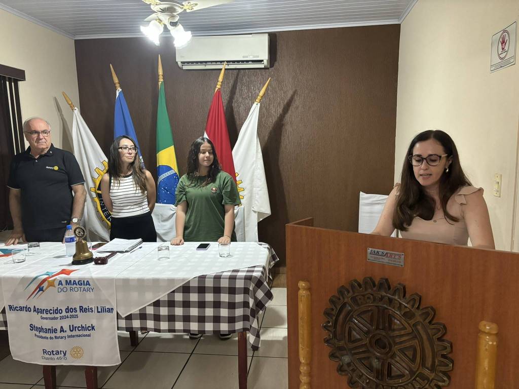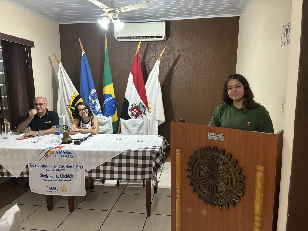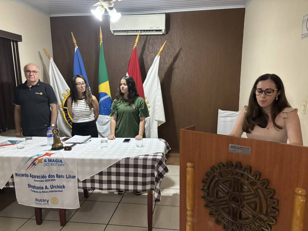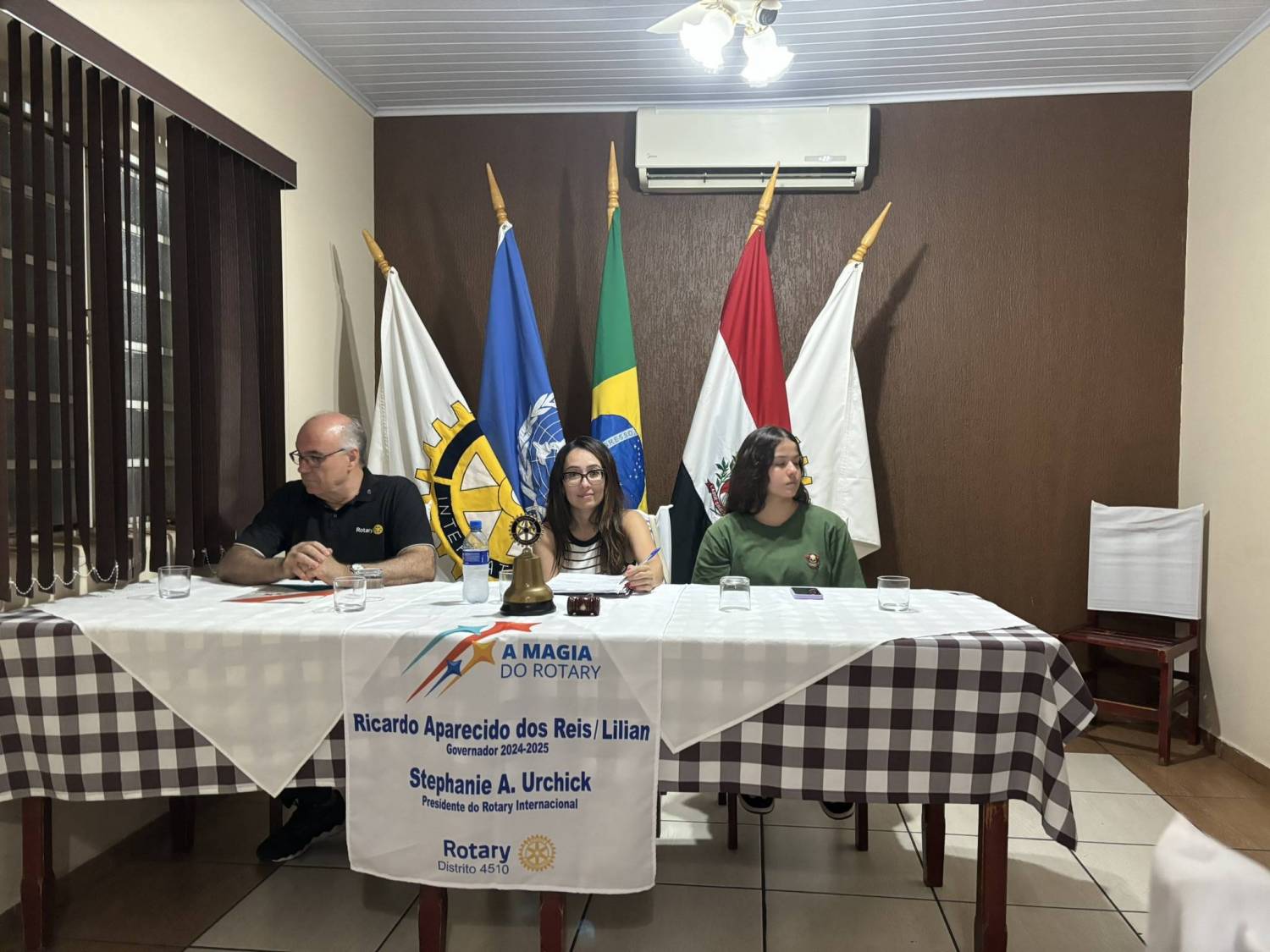 Reunião dia 18/02/24 tivemos as visitas: Governador Assistente Giroto do RCPP Norte, sua esposa e companheira RCPP Norte, Sonia, intercambiaria Beatriz Camarini que veio falar como foi seu intercambio na Alemanha, seus pais ,convidadas Denise Queiroz, Tatiana Sonvezzo, Maria Clara, Angelica, Vilma e Jussara