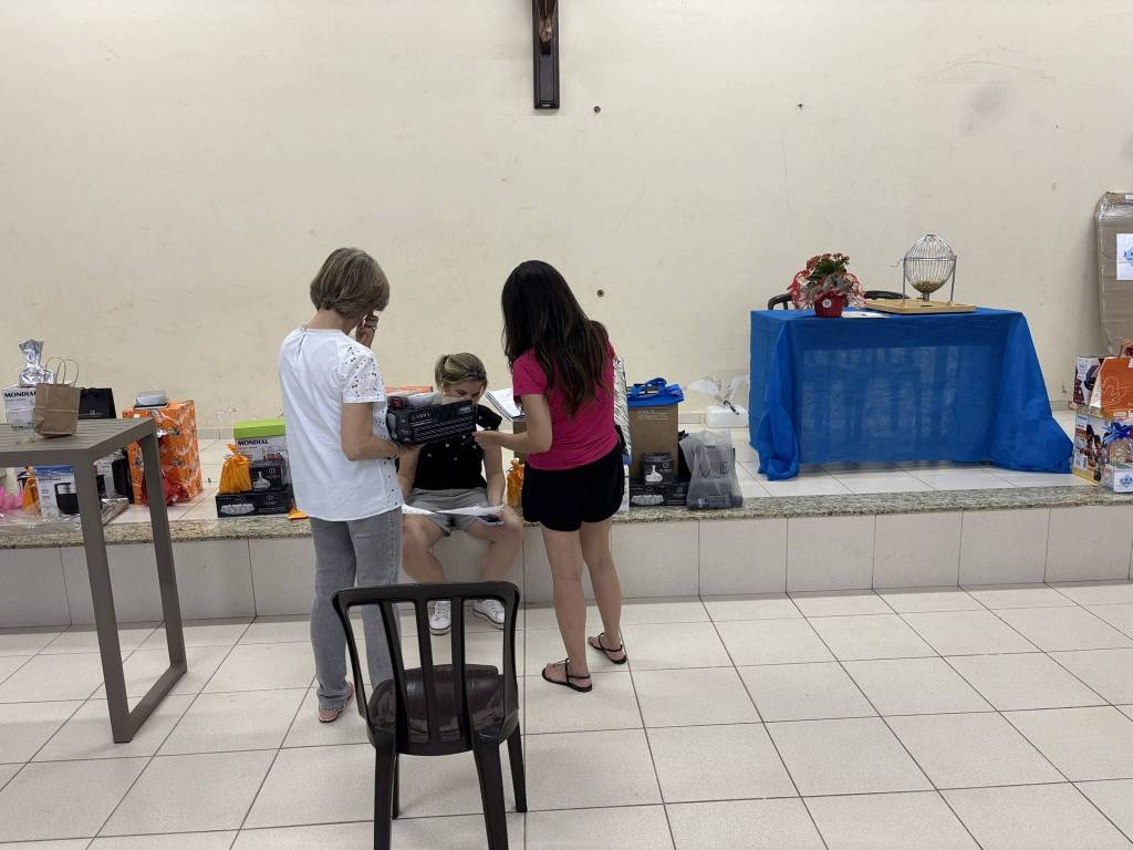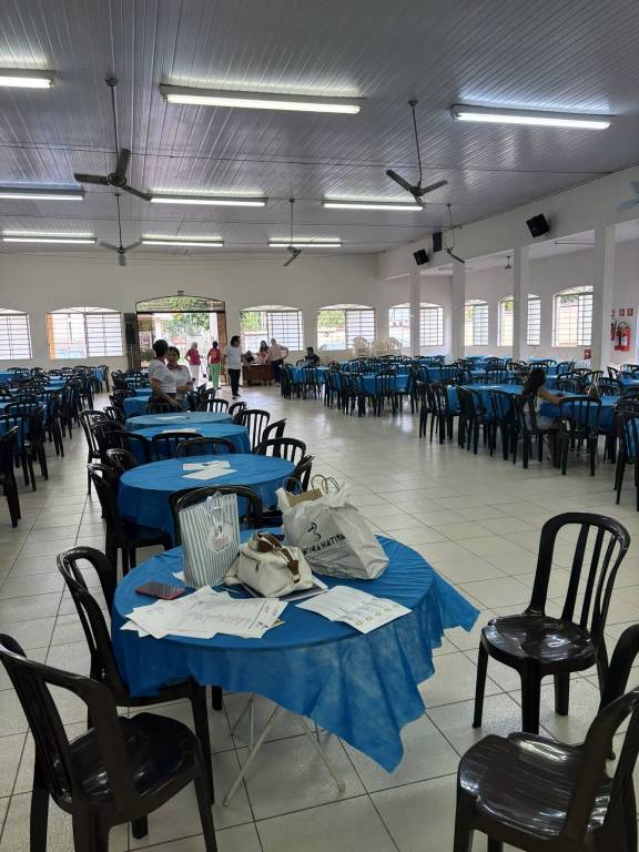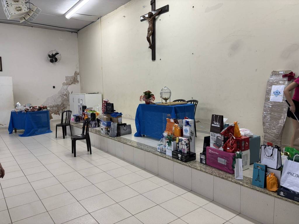 Arrumando o salão dia 09-05-25 para o chá Beneficente de amanhã dia no Seminário