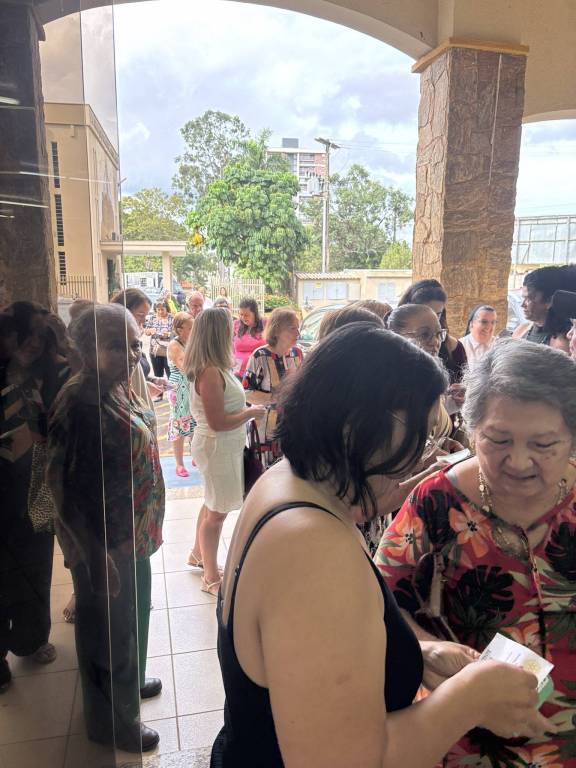 Equipe da frente recebendo as pessoas para nosso chá beneficente realizado dia 10/05/25.