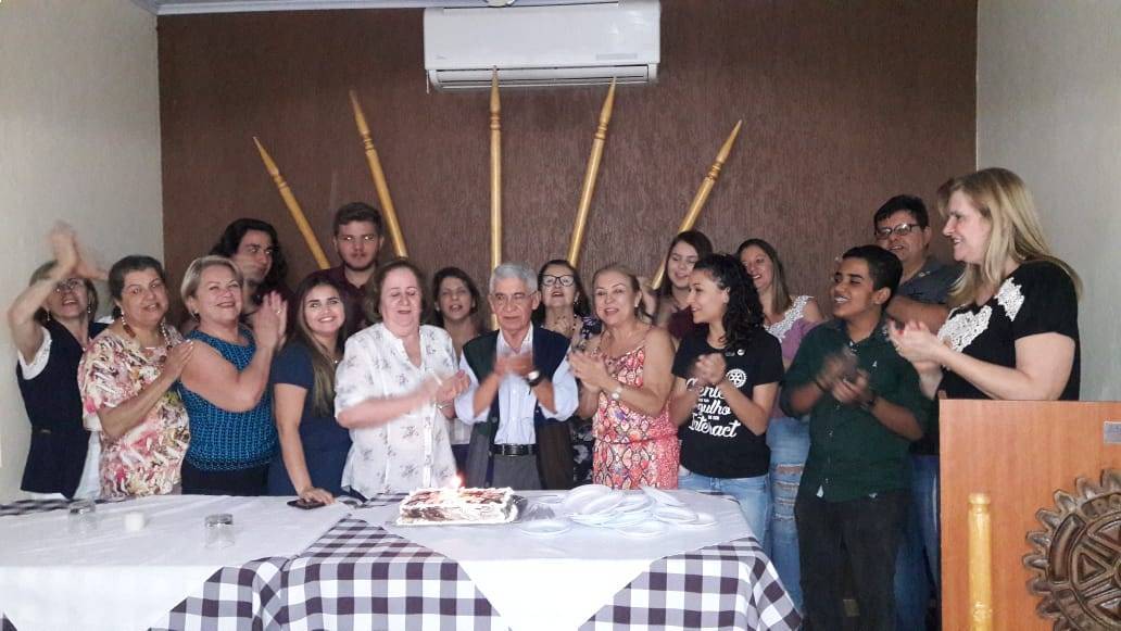 Comemoramos na reunião do dia 31/07/18 os aniversários da comp. Luiza Malvezi de Lima e do Gov. 2014/15, nosso Associado Honorário e presidente do RCPP Leste Vilcio Caetano de Lima com um delicioso bolo