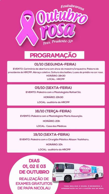 Abertura da Campanha Outubro Rosa no Hospital do Cancer em Presidente Prudente no dia 01/10/2018
