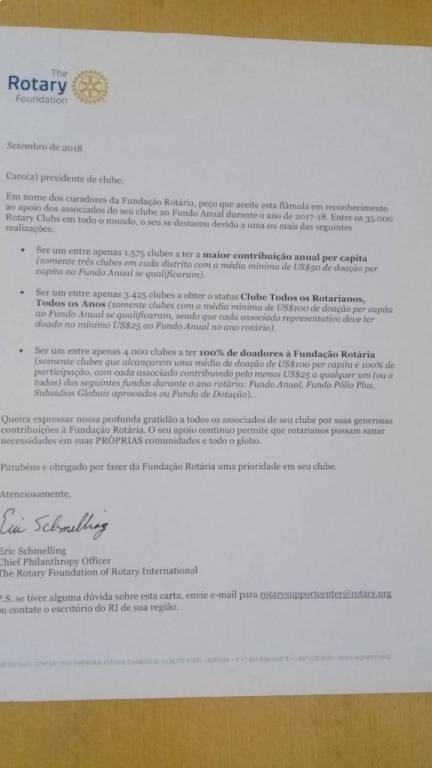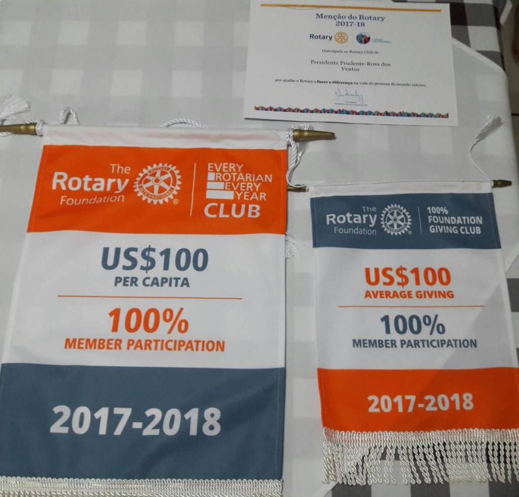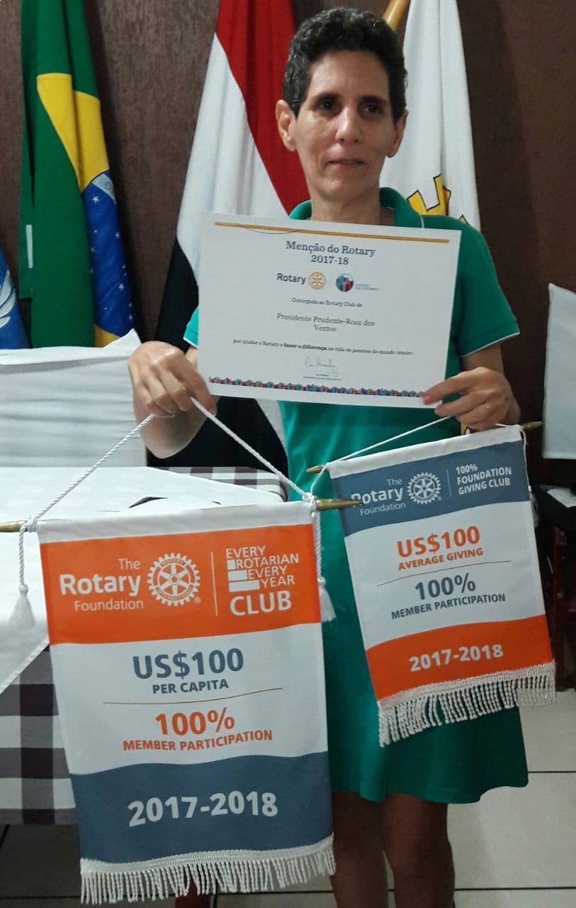 Certificados e Menção do Rotary Internacional recebidos pela presidente 2017/18 Valéria Maganini Nunes