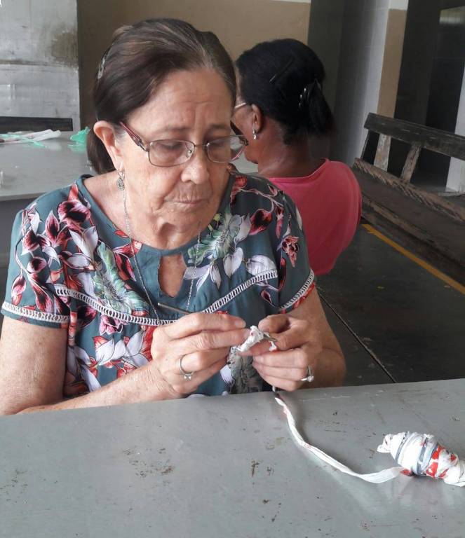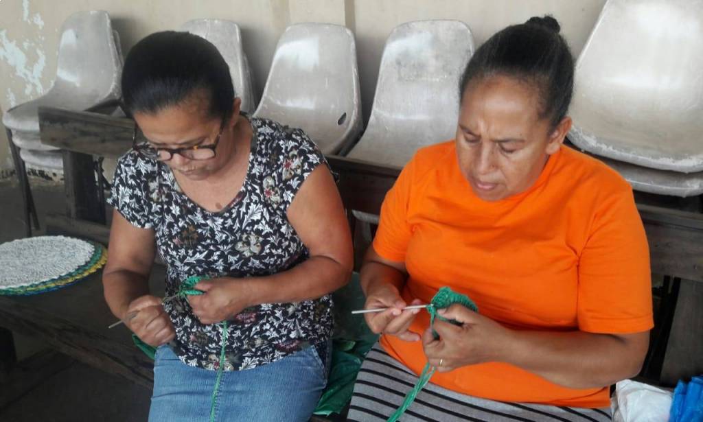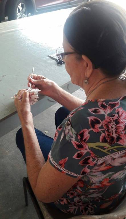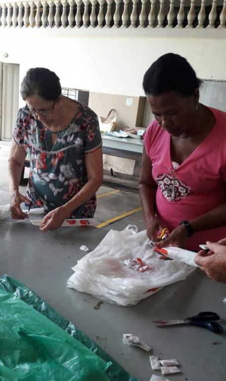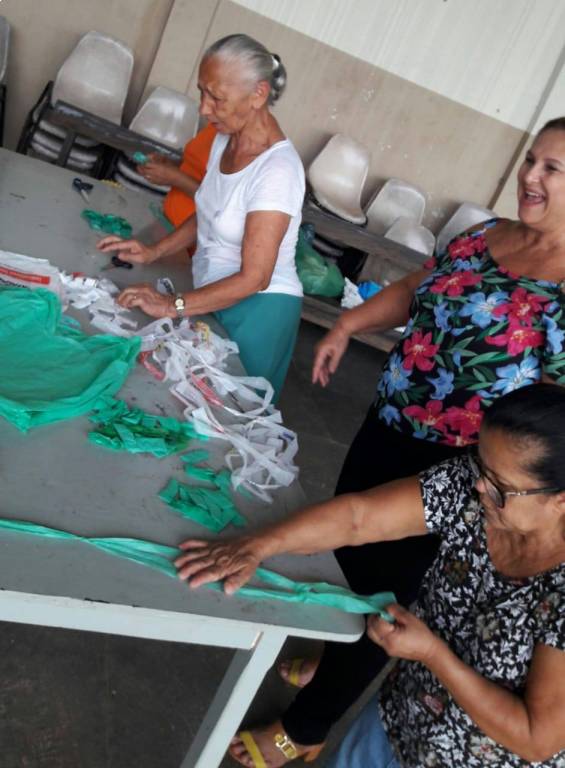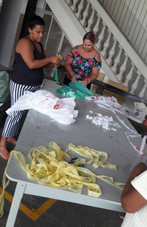 Dia 27/02/19 começou no NRDC Santa de Cássia o curso de supá feito de sacola palstica em crochê realizado pela voluntária Célia Casadei.
