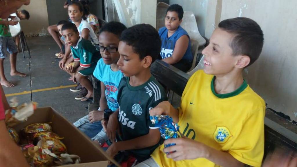 Entrega de ovo de Páscoa as crianças do NRDC Santa Rita de Cássia