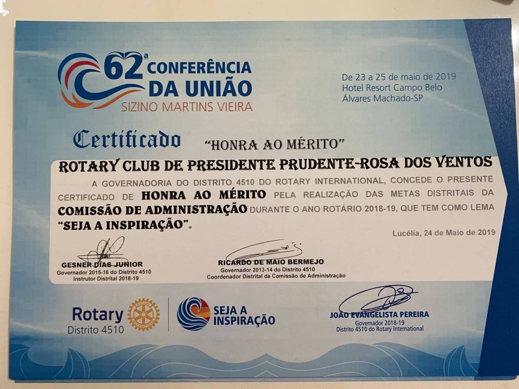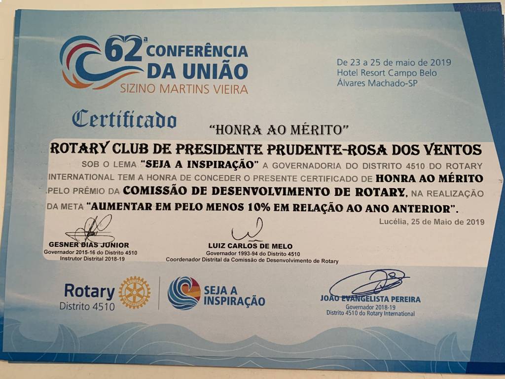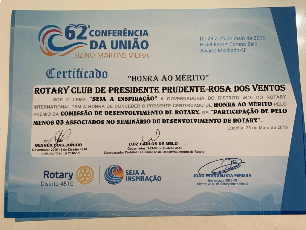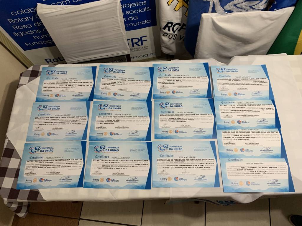 N reunião do dia 04/06/19 foi mostrado ao Club os certificados recebidos na 62° Confeencia Distrital , realizado no final de maio em Alvares Machado. Nossas metas estabelecidas e que sejamos sempre a Inspiração.