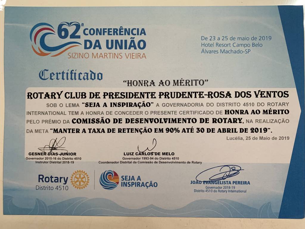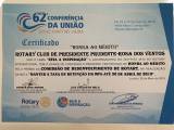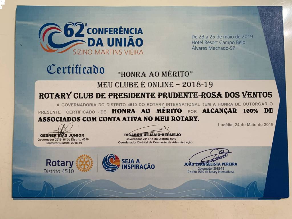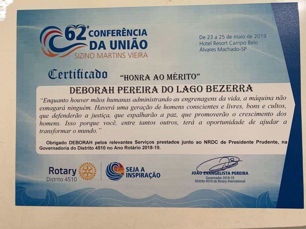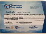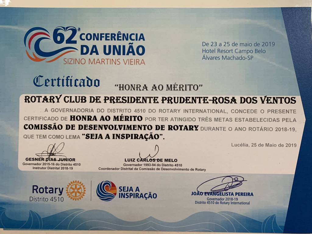 N reunião do dia 04/06/19 foi mostrado ao Club os certificados recebidos na 62° Confeencia Distrital , realizado no final de maio em Alvares Machado. Nossas metas estabelecidas e que sejamos sempre a Inspiração.