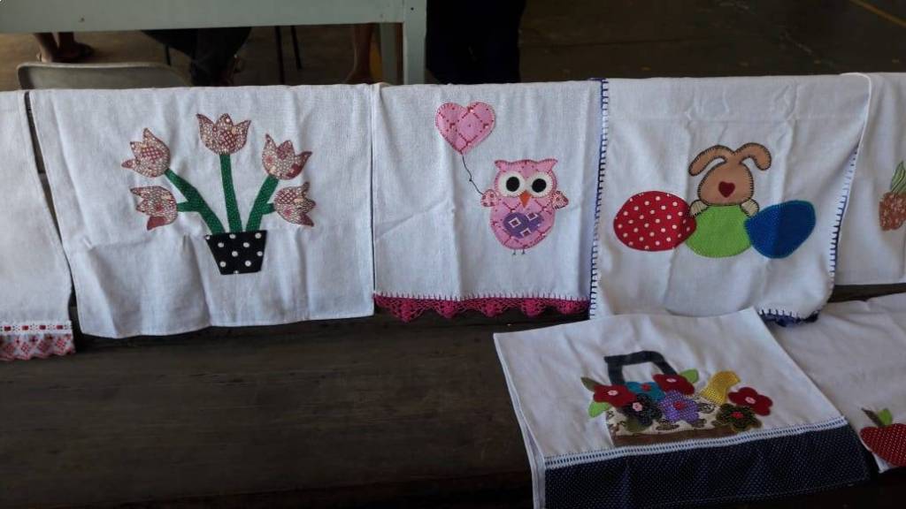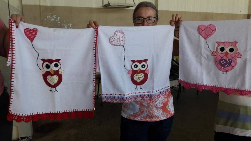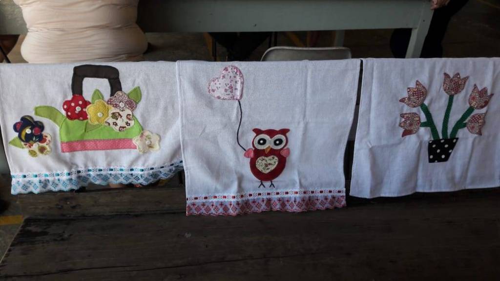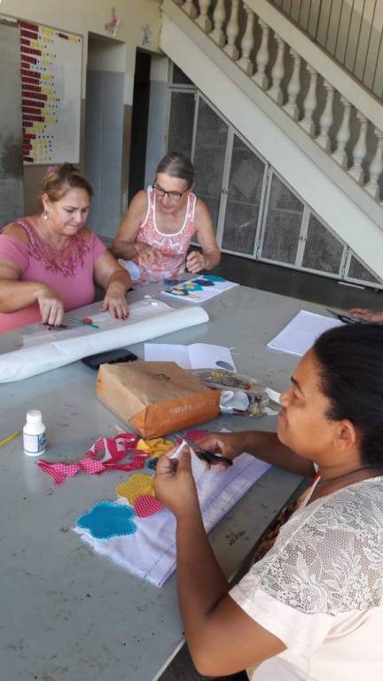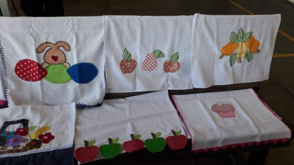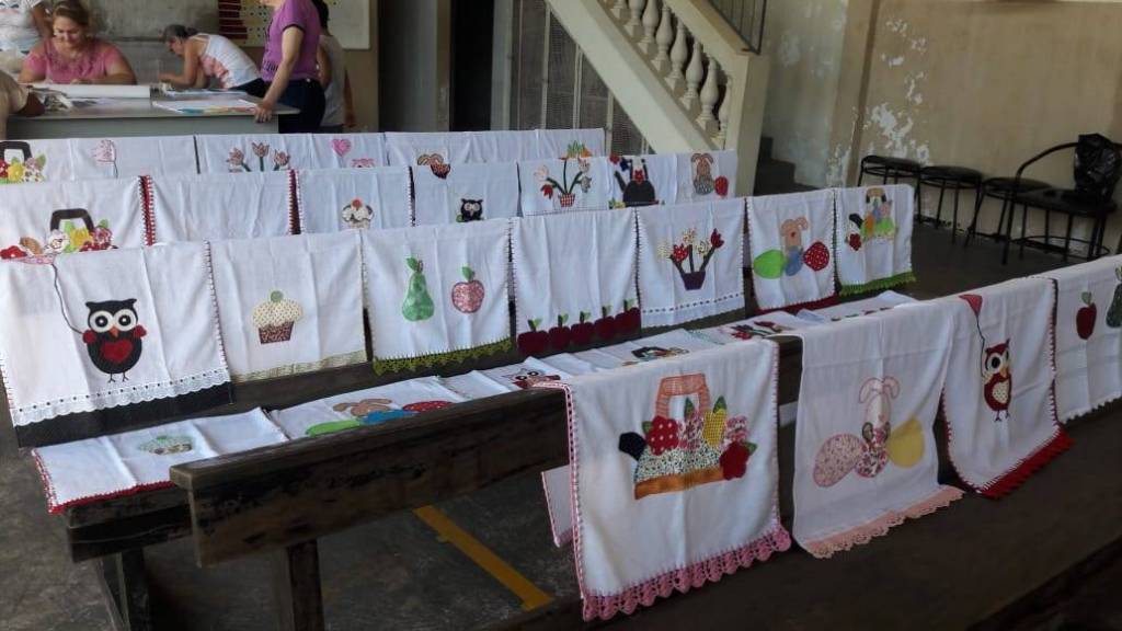 Trabalhos prontos com o término do curso de pet- colagem no NRDC Santa Rita de Cássia . Curso realizado pela dama rotária Célia Casadei