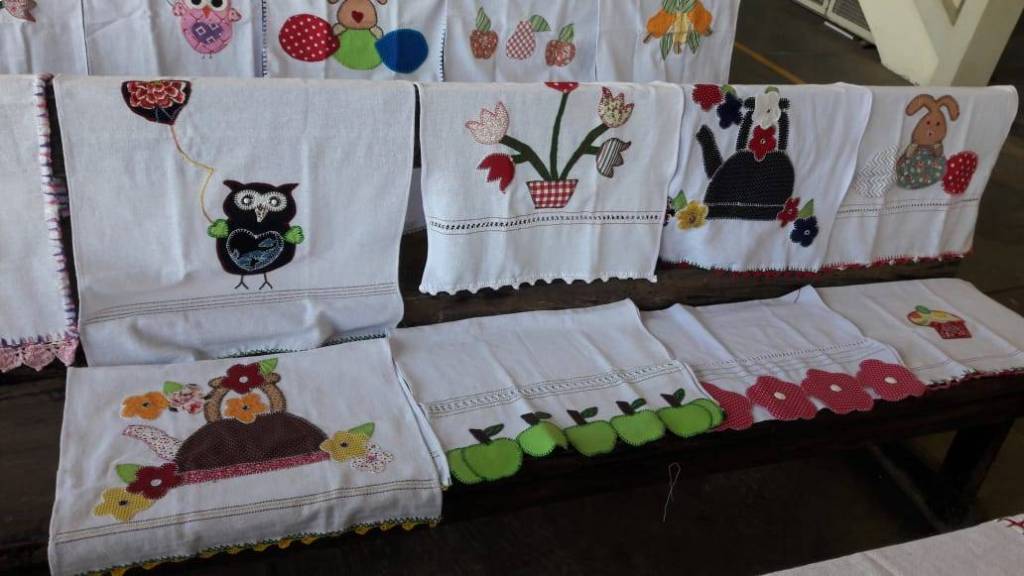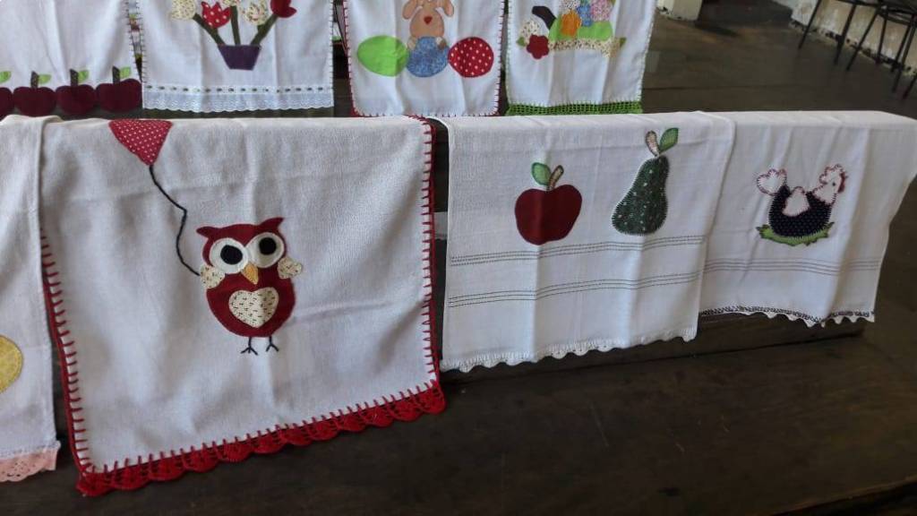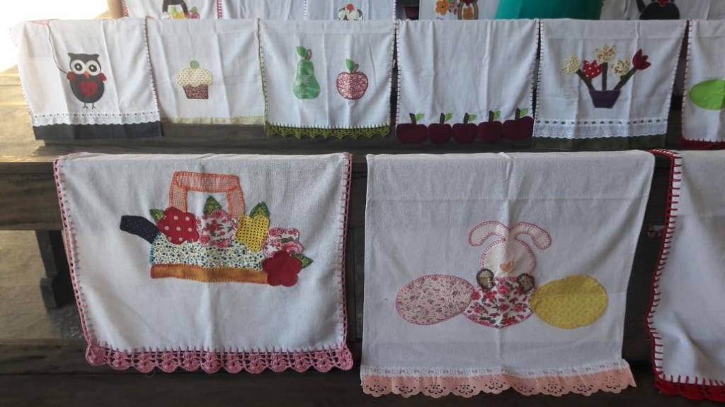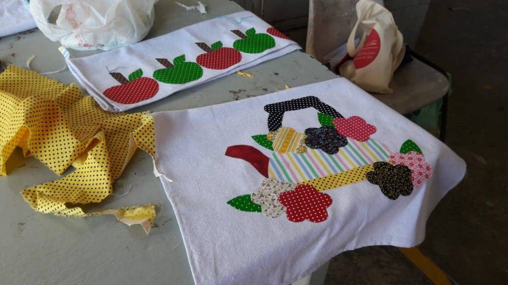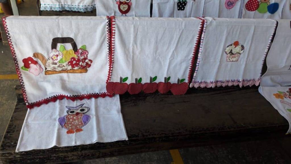 Trabalhos prontos com o término do curso de pet- colagem no NRDC Santa Rita de Cássia . Curso realizado pela dama rotária Célia Casadei