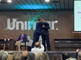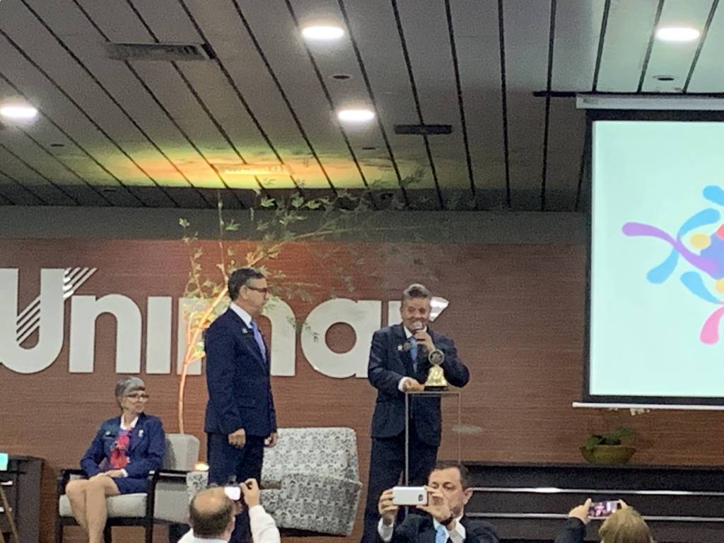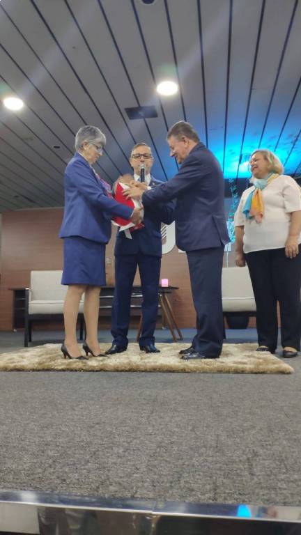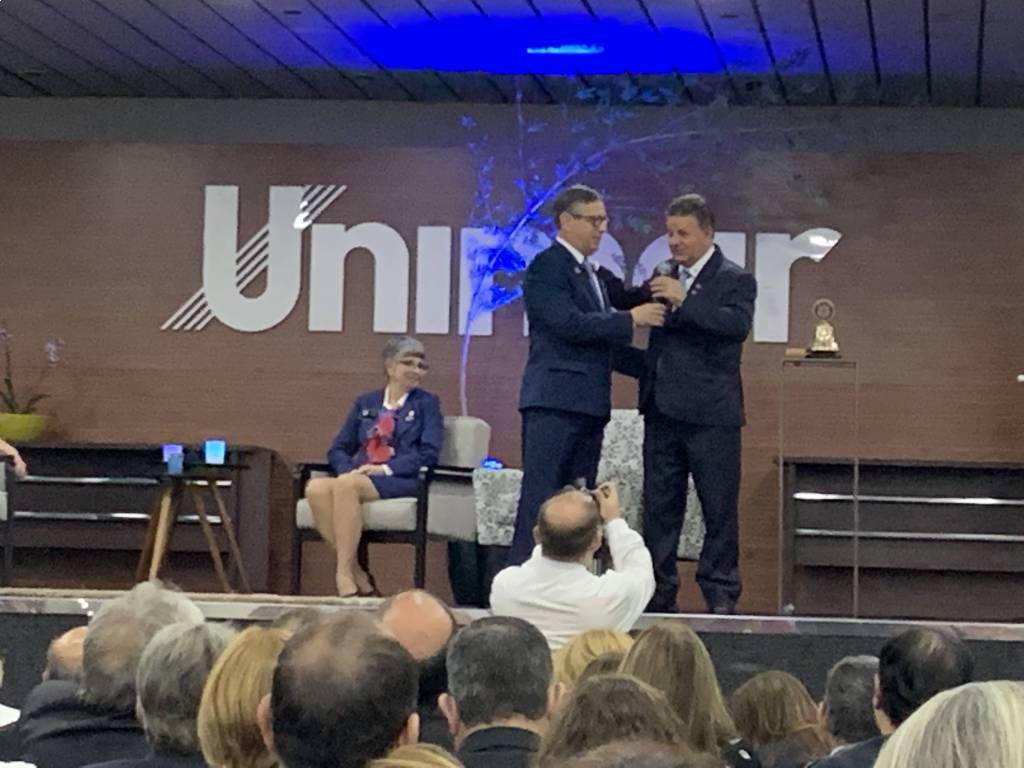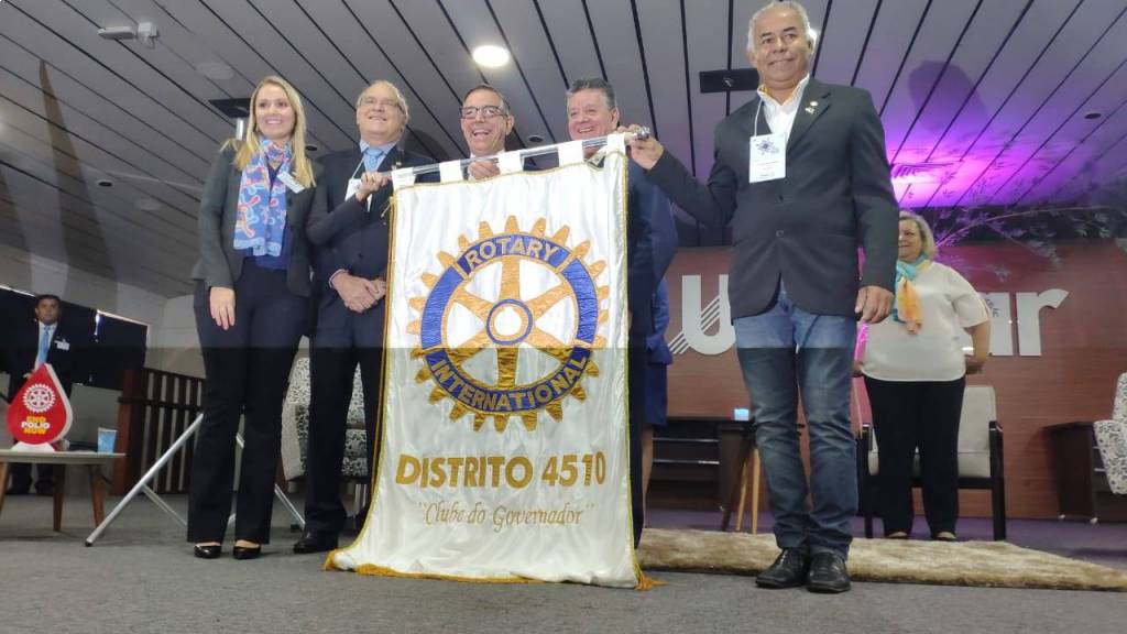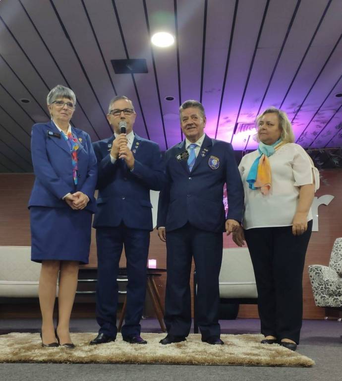 No encerramento da Assembléia Distrital em Marília , Governador João Evangelista pereira 2018/19 de posse ao Governador 2019/20 Marcos Antonio Carchedi ,que assumirá a partir de 01/07/19
