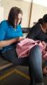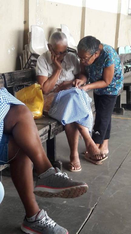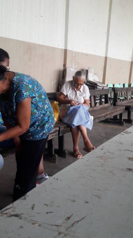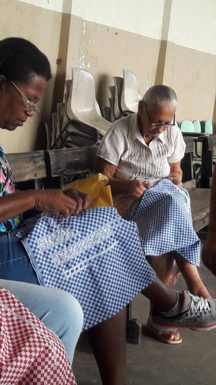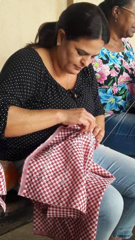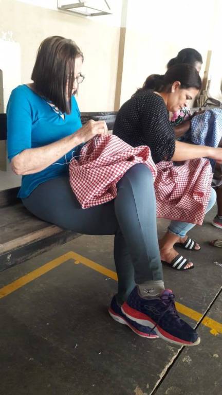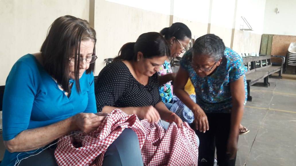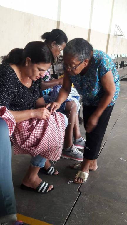 Aula do dia 26/06/2019 do curso de bordado em ponto mariposa no NRDC Santa Rita de Cássia