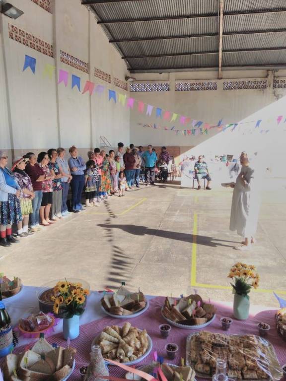 Dia 28/06/19 no NRDC Santa Rita de Cássia houve festa junina do Projeto Reviver, Irmã Tereza fez espiritualidade, flaou também o presidente do bairo Geraldo da Padaria sob a supervisão do clodoaldo os idosos dançaram quadrila e jogaram binguinho e comeram os quitutes deliciosos da festa junina.