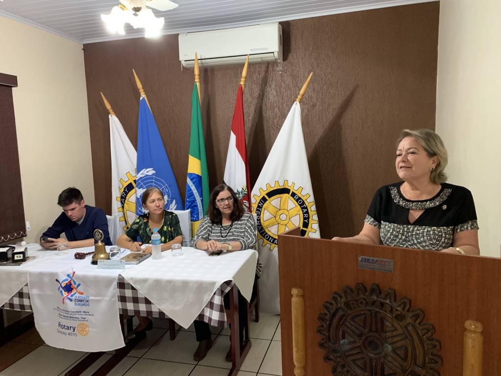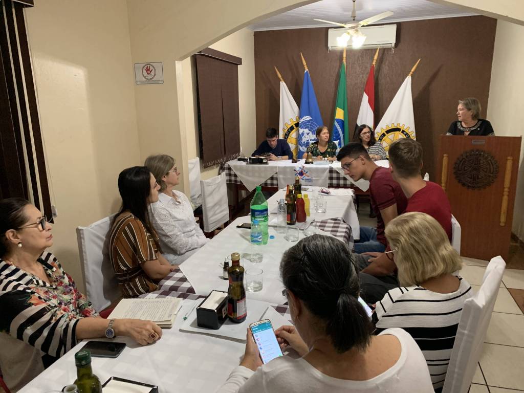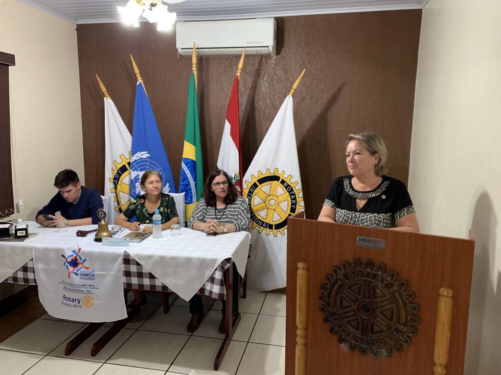 Reunião do dia 20/08/19 tivemos as visitas:Governador Assistente Caio Petrel, Associada Honorária Eliana Ederle Dias Chaves, nossos intercambiários, Paul Menge da Alemanha,Bruno monteiro Possete sua mãe Luana Monteiro Possete,e seu irmão Athur Monteiro possete
