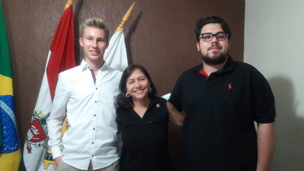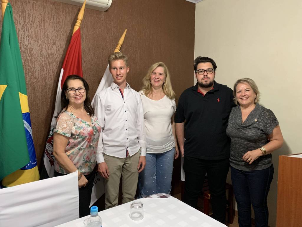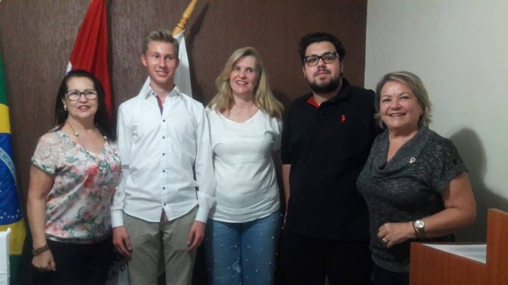 Intercambiários Immanuel Grahl, Théo Ferreira Peruchi coma presidente Neusa Matos, Oficial Rita Krasucki, conselheiras Deborah PL Bezerra, Rosa Maria Rissato Rodrigues