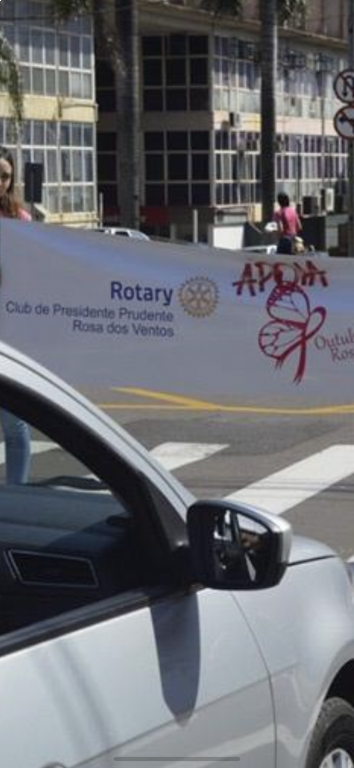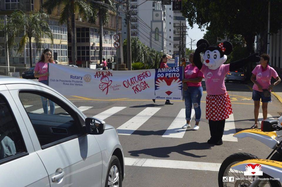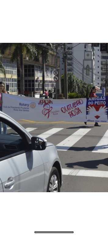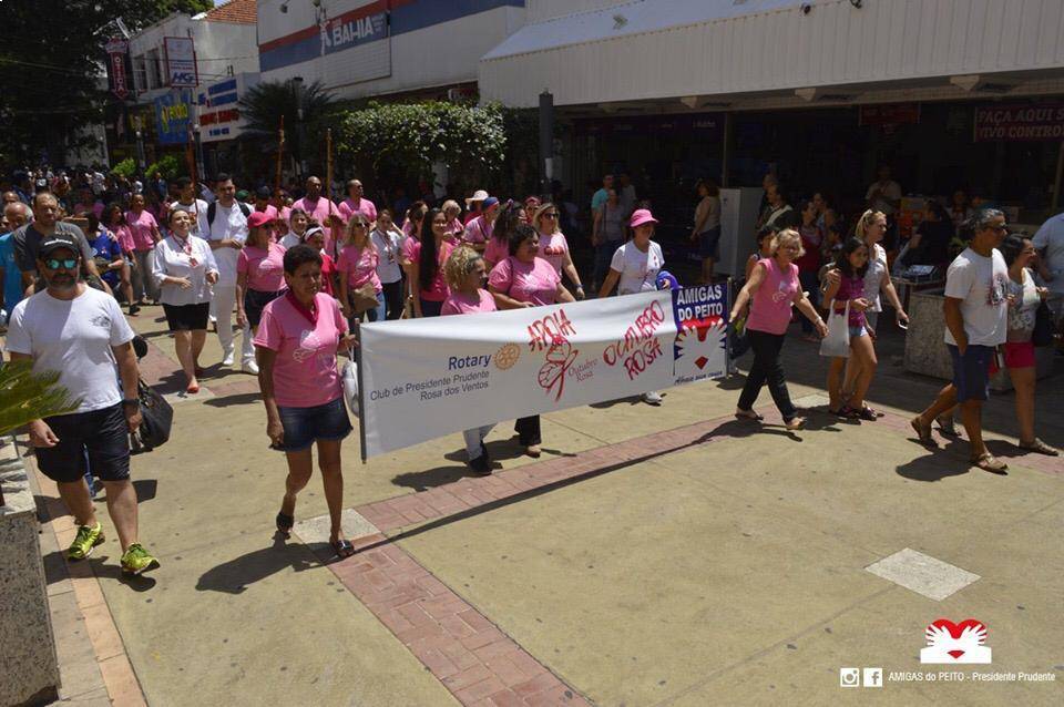 Na manhã de sabdo dia 05/10/19 as Amigas do Peito fizeram uma caminhada no calçadão de Prudente e um pedágio coma a faixa que o RCPP Rosa dos Ventos apoia o Outubro Rosa.