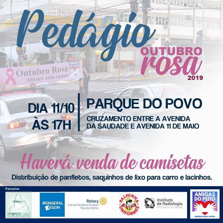 Pedágio Outubro Rosa dia 11/10/19 as 17:00 horas no Parque do Povo.